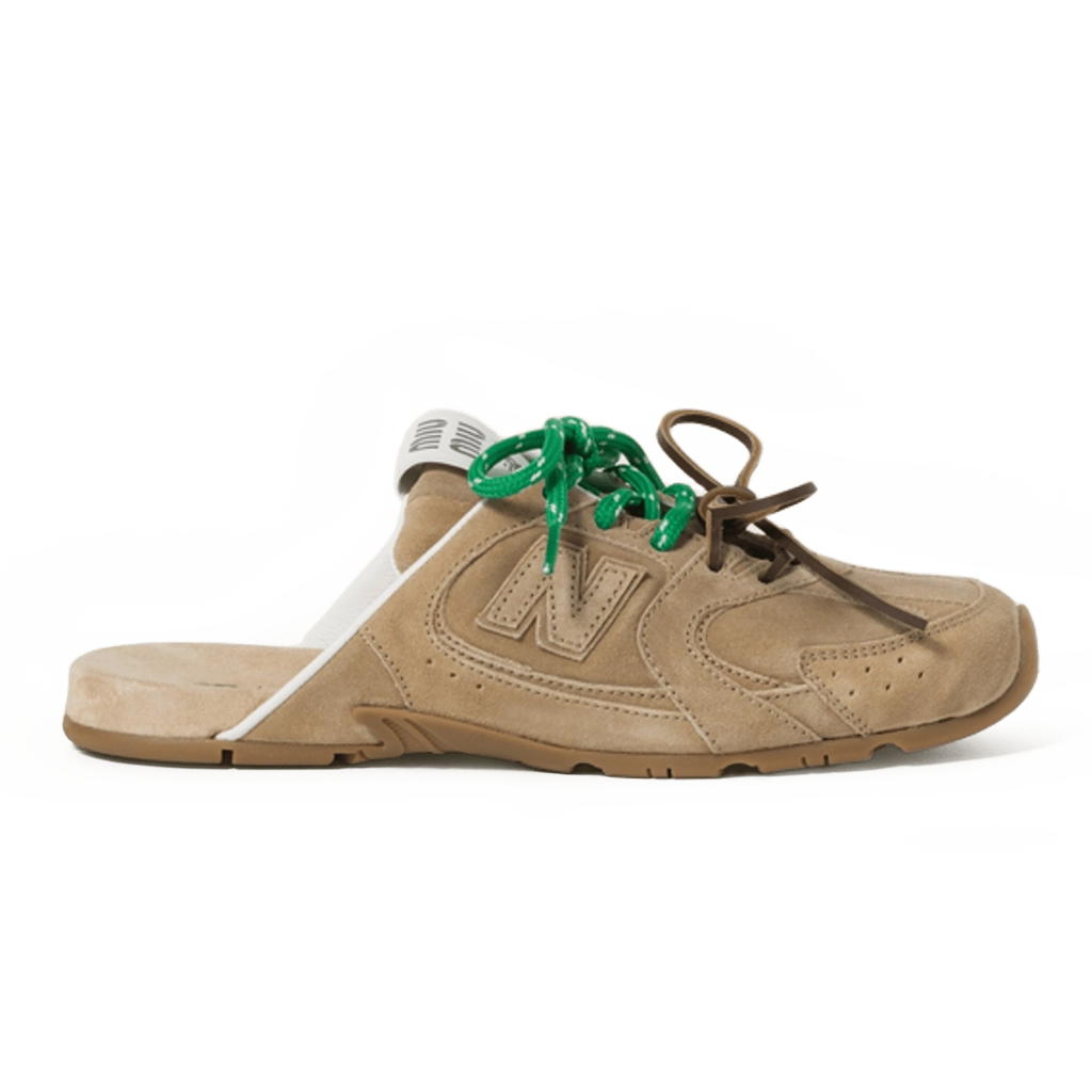 New Balance x Miu Miu 530 SL Faded Suede Mules Ecru