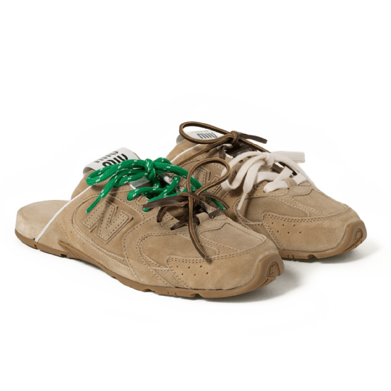 דגם New Balance x Miu Miu 530 SL בצבע אקרו מציג פרשנות יוקרתית ועכשווית לאייקון ספורטיבי מוכר. העיצוב הפתוח בסגנון כפכף מאפשר נעילה קלה ונוחה, תוך שמירה על מראה מינימליסטי ומדויק. חלק עליון מזמש דהוי מעניק עומק וטקסטורה ייחודיים, והגוון הניטרלי משתלב בקלות עם מגוון לוקים יומיומיים ואלגנטיים.