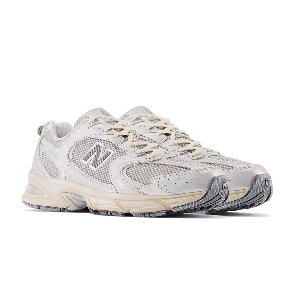 דגם New Balance 530 בצבע כסף וינטג’ מטאלי מונביים מציע גרסה מלוטשת ומעודנת לצללית הרטרואית של נעלי ריצה קלאסיות, בשילוב נוחות מודרנית. החלק העליון עשוי רשת נושמת עם שכבות סינתטיות המספקות תמיכה ועמידות לאורך כל היום. בסיס כסף וינטג’ עם נגיעות מטאליות עדינות יוצר מראה אלגנטי ורב-שימושי המדגיש את הצללית האייקונית של סדרת 530 ומשתלב בקלות עם סגנונות יומיומיים שונים.