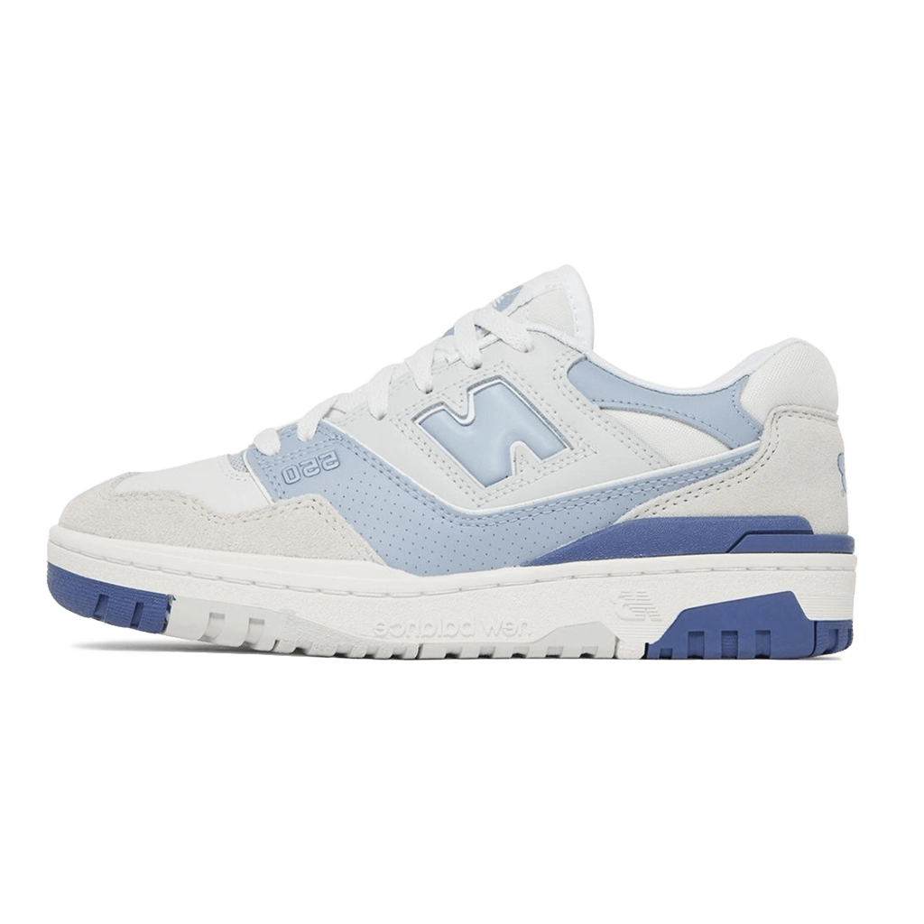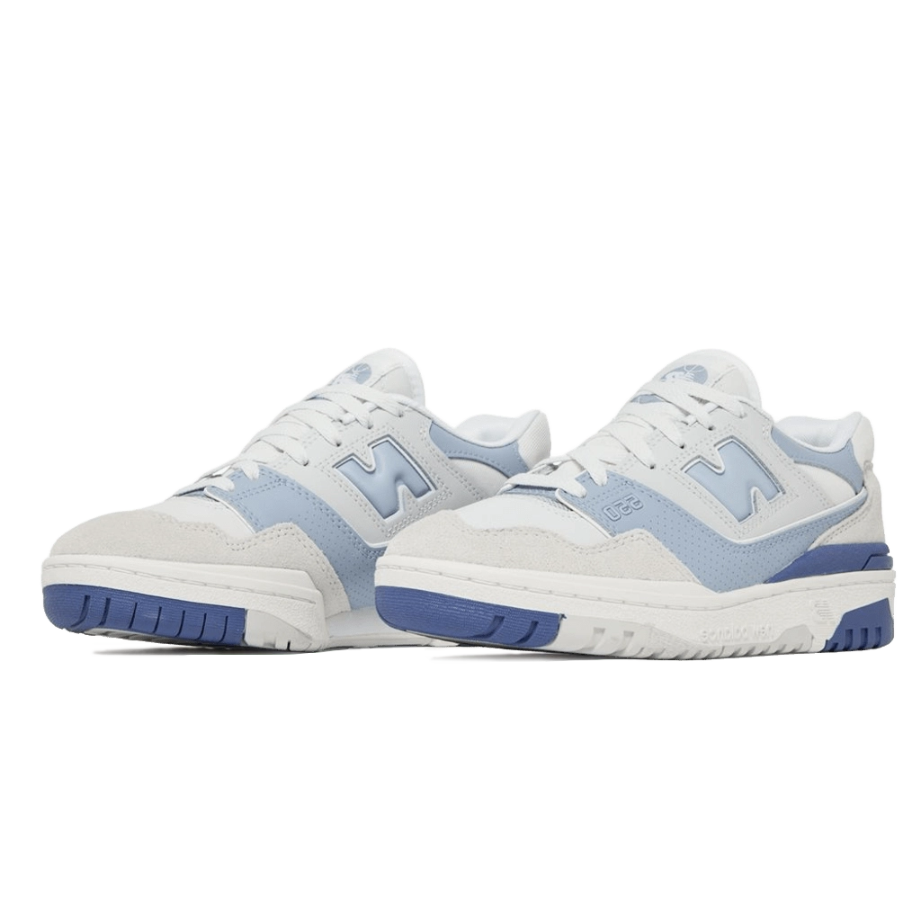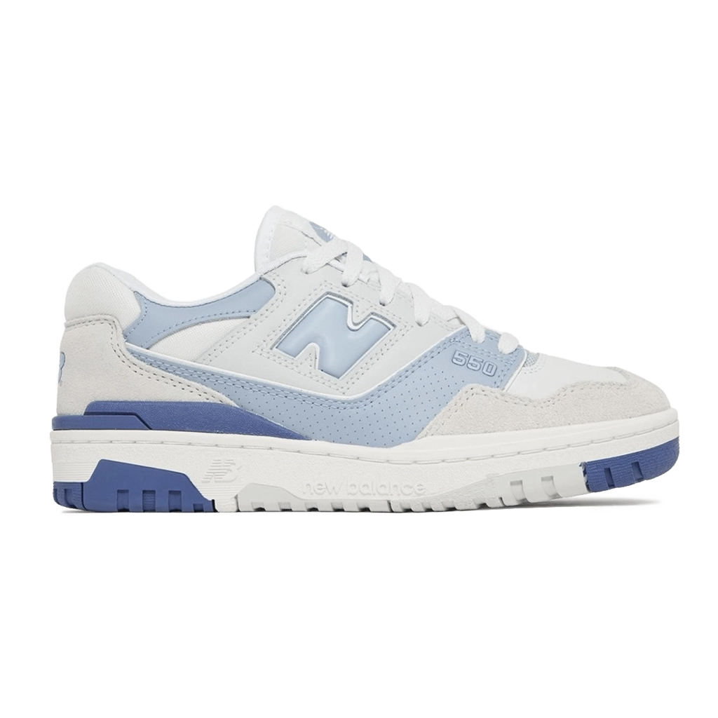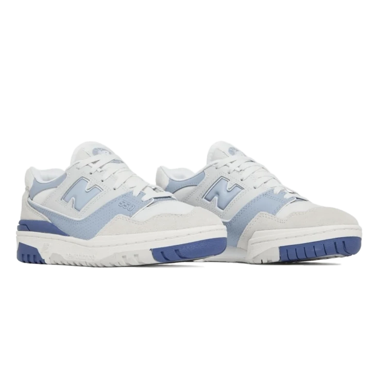 נעלי New Balance 550 ‘Summer Fog Dusk Blue’ מציגות עיצוב כדורסל וינטג’ עם צבעוניות עדינה ומעודנת. בסיס עור לבן נקי מותאם עם חיפויי זמש אפור-בהיר, בעוד נגיעות אפור-כחול מדגישות את הלוגו “N” האייקוני, המיתוג בעקב ותחריט בעיניים הקדמיות. סוליית גומי דו-גוונית משלימה את הפלטה בצבעים ומספקת אחיזת עומס ועמידות. פרופורציות קלאסיות עם עיצוב מודרני הופכים את הנעליים לאידיאליות ללבישה יומיומית.