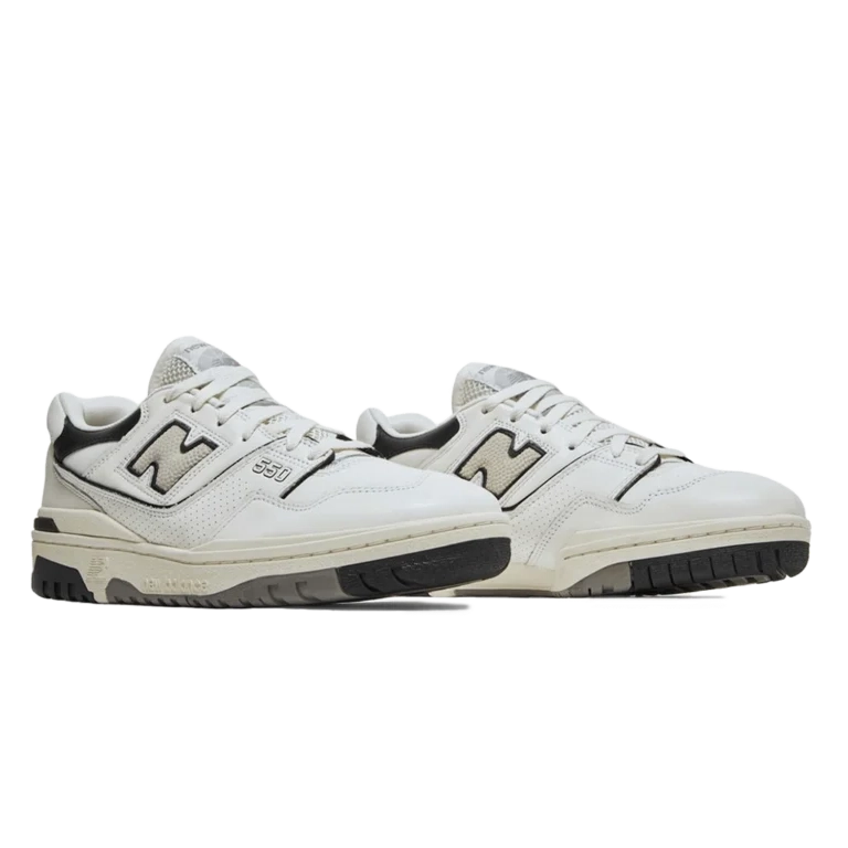 New Balance 550 “Sea Salt/Black” מציעה אסתטיקה מינימליסטית אך מעודנת, המשלבת עיצוב כדורסל קלאסי עם סגנון עכשווי. החלק העליון הלבן מעור משולב עם לוגו ‘N’ מעור אפור בעל מרקם זמש ושכבות עור שחור, כולל קליפ עקב מעוצב עם גרפיקה של ה-Flying NB. הקולר הרשת הנמוך משפר את הנשימה, בעוד שסוליית הגומי המסורתית עם דפנות מזוגגות וחור EVA חשוף מספקת עמידות ונוחות.