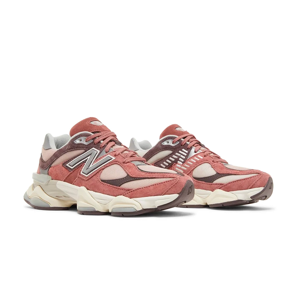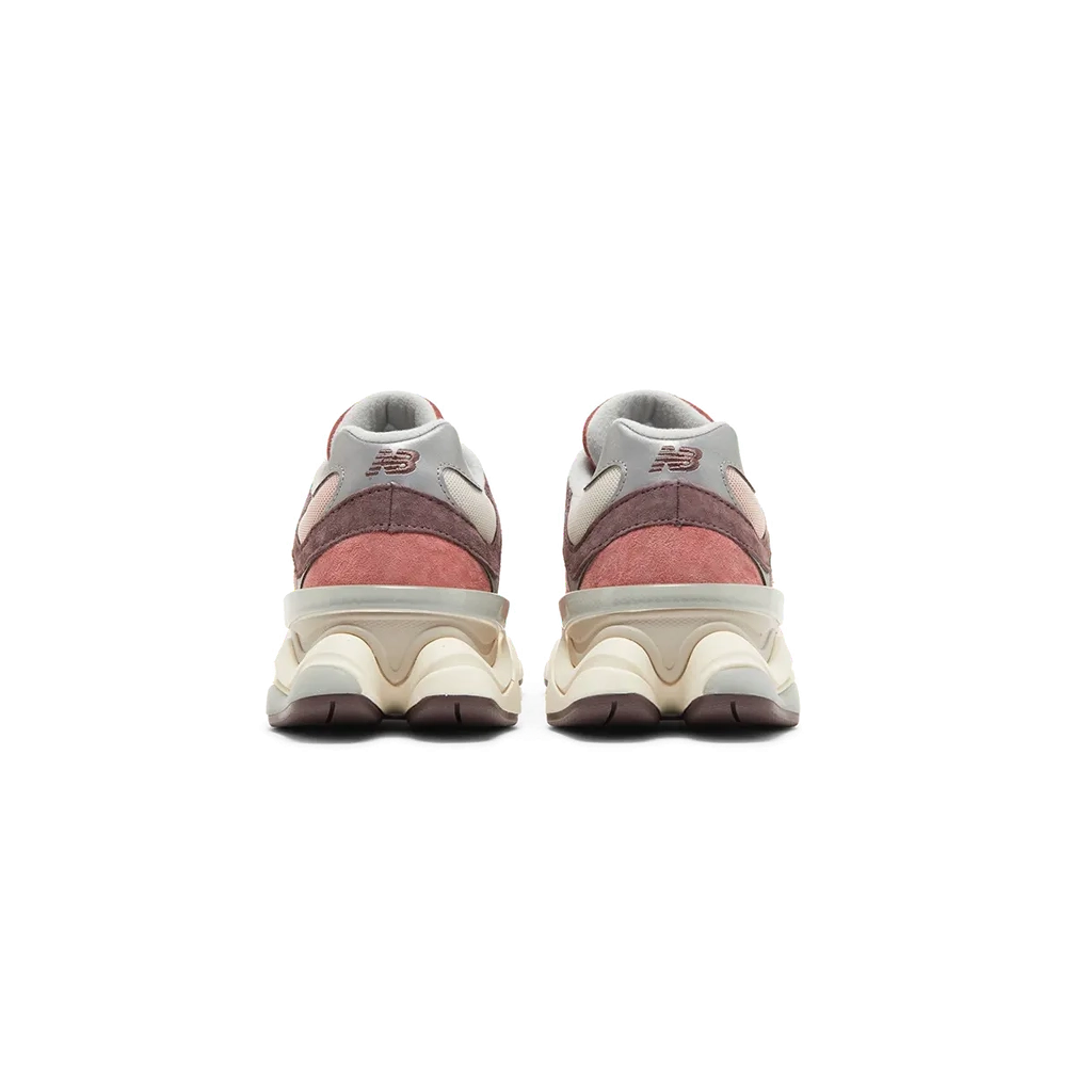 החלק העליון של 9060 Cherry Blossom הגיע מזמש מוברש ורשת תחתית עם תוספת גווני שוקולד שעושים את דרכם לצד לוחות וקדמת כף הרגל. תורם למראה הוא גוון כסוף שנמצא על הסמלים N שאינם תואמים, והעין נשארת. מתחת לנעל, סוליית ביניים ABZORB ו-SBS בצפיפות כפולה המחוברת לסוליית חוץ במבנה יהלום.