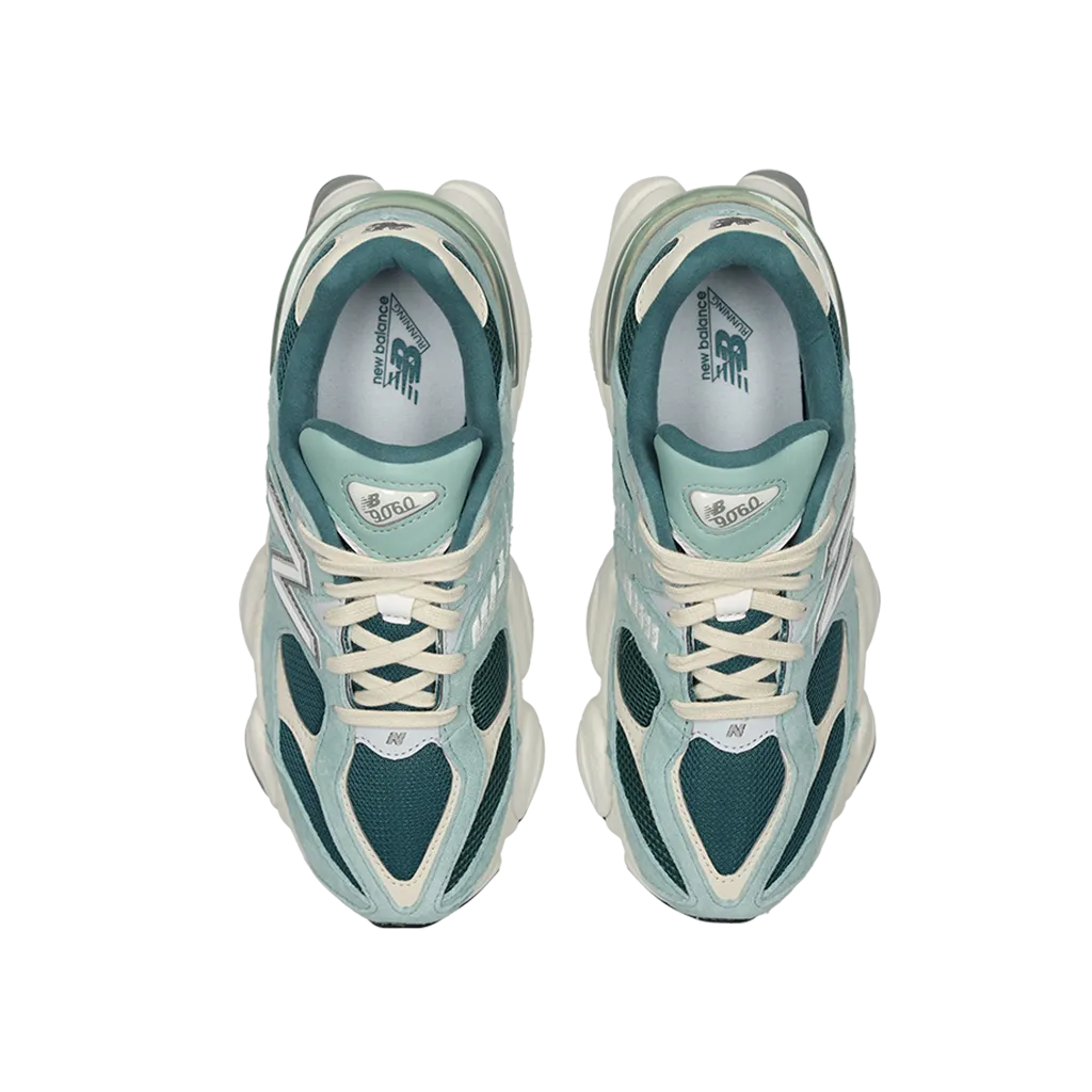 ה-9060 הוא ביטוי חדש לסגנון המעודן ולעיצוב מוביל חדשנות של סדרת 99X הקלאסית. ה-9060 מפרש מחדש את אלמנטי ה-99X המוכרים עם רגישות מעוותת בהשראת האסתטיקה הטכנולוגית העתידנית והגלויה בגאווה של עידן Y2K. מוטות סווי, שנלקחו מה-990, מורחבים ומנוצלים לאורך כל החלק העליון לתחושת תנועה גלויה, בעוד קווים גליים ופרופורציות מוגדלות על סוליית תרמיל מפוסלת נותנים דגש מוגזם על פלטפורמות הריפוד המוכרות של ABZORB ו-SBS.