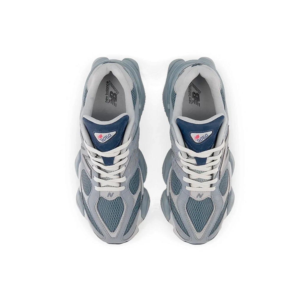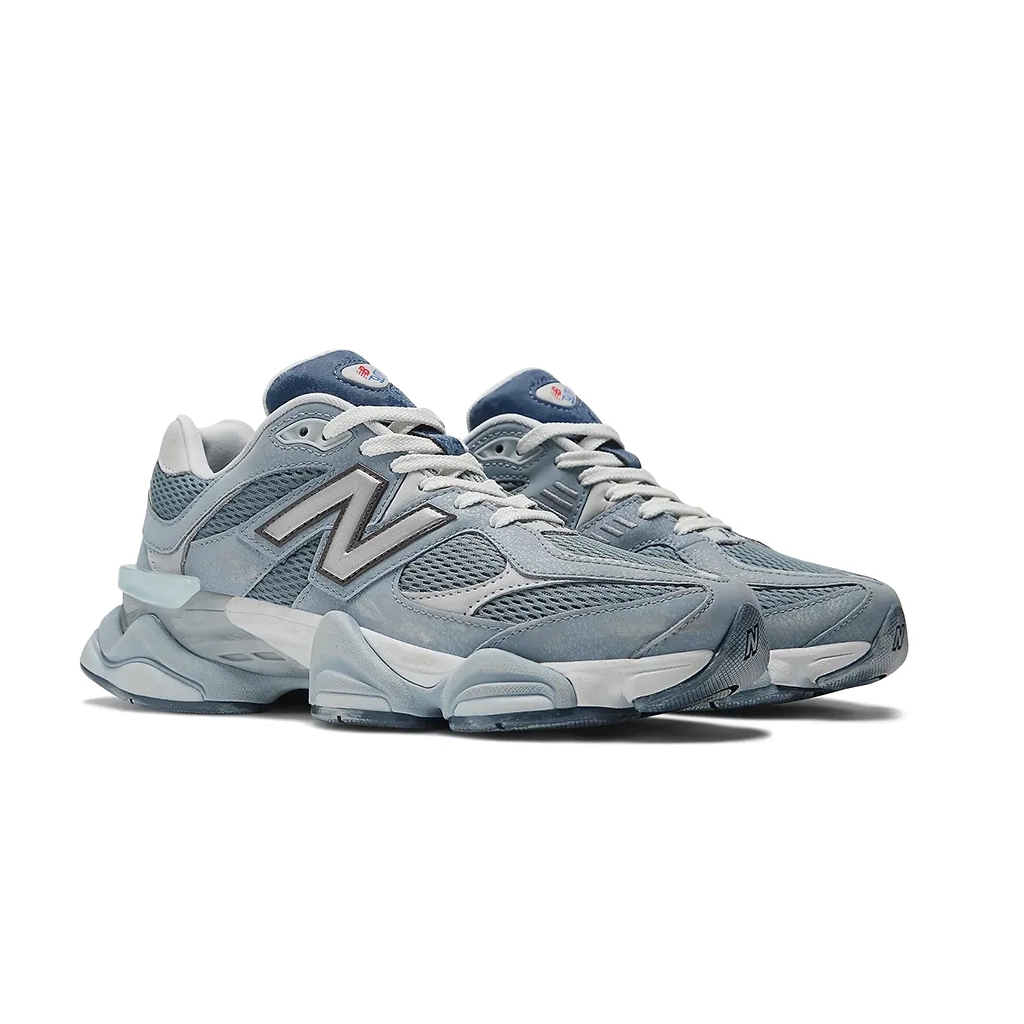 ה-New Balance 9060 כולל עיצוב מונחה חדשנות – בצבעי אפור וכחול. צמד זה מפרש מחדש אלמנטים מוכרים מדגמי ה-99X הקלאסיים עם רגישות מעוותת בהשראת האסתטיקה הטכנולוגית העתידנית והנראית לעין של עידן שנות ה-2000. הוא מגיע עם קווים גליים ופרופורציות מוגדלות והוא מונח על סוליית ביניים מפוסלת ששמה דגש מוגזם על פלטפורמות הריפוד המוכרות של ABZORB ו-SBS.
