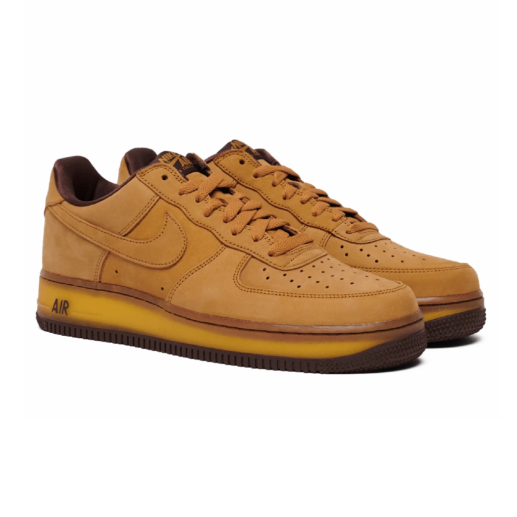 נובוק חיטה חם וסוליית מוקה כהה יוצרים מראה AF1 קלאסי עם נגיעה עונתית מודרנית.