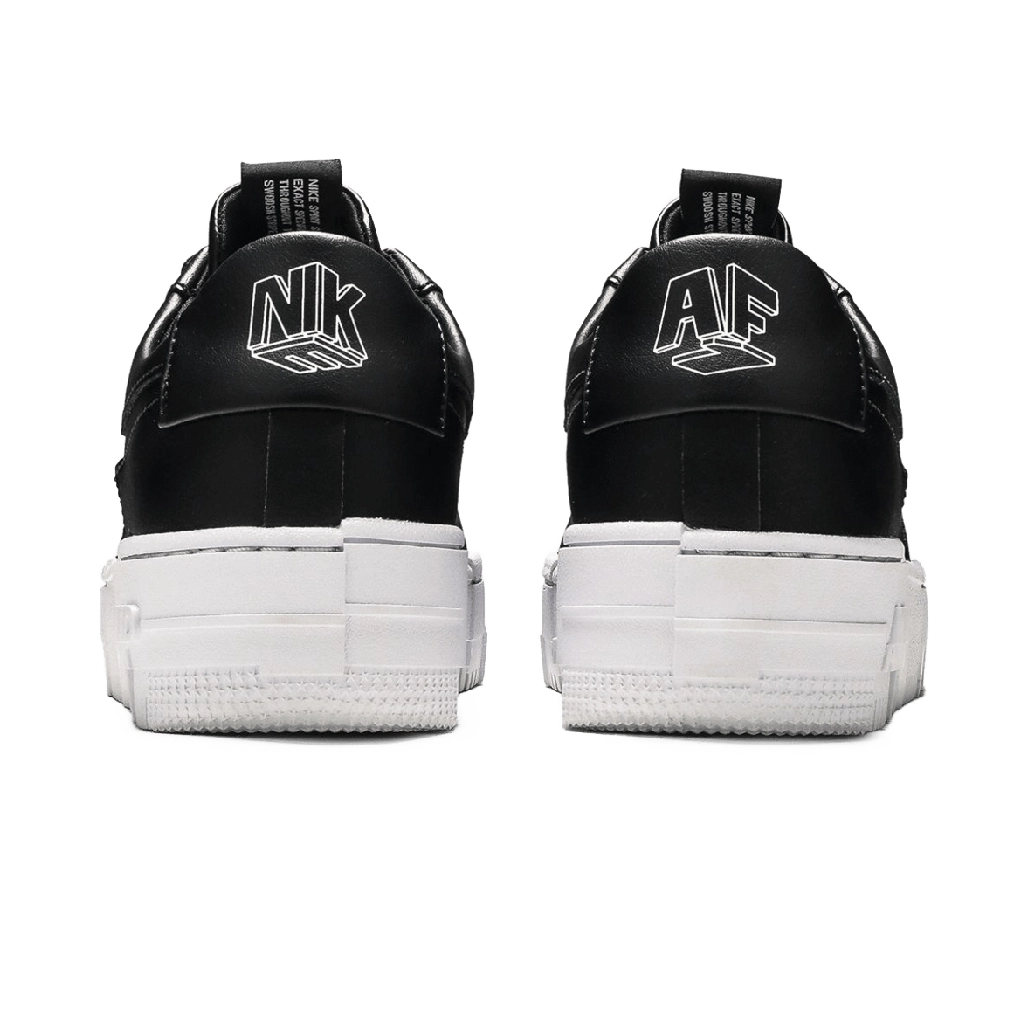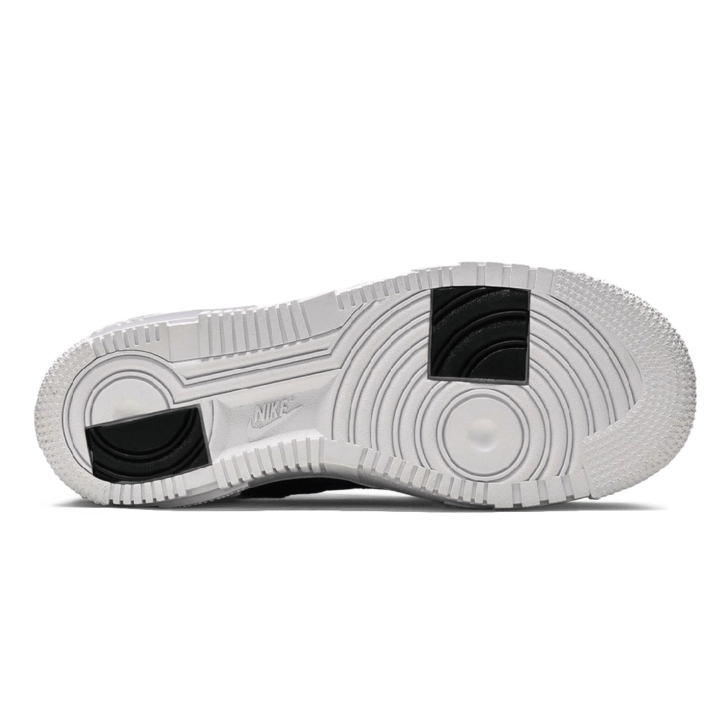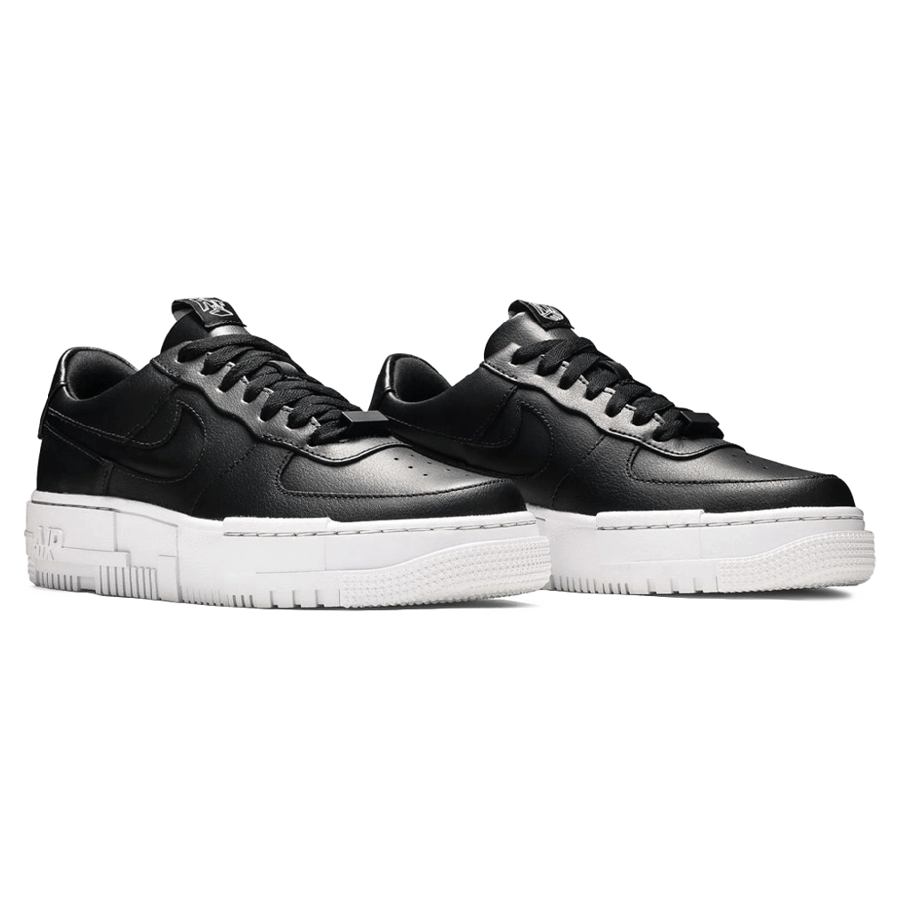 הסניקרס של Air Force 1 Pixel מגיעות בצבעוניות נקייה לגמרי של שחור עם פרטים ייחודיים לכל אורכה. זוג זה עשוי מעור וכולל לוגו Swoosh בצדדים וממדים מעוותים. מתחת, לסוליית הביניים יש פרטים זוויתיים בעוד שסוליית הגומי מביאה נוחות לעיצוב.