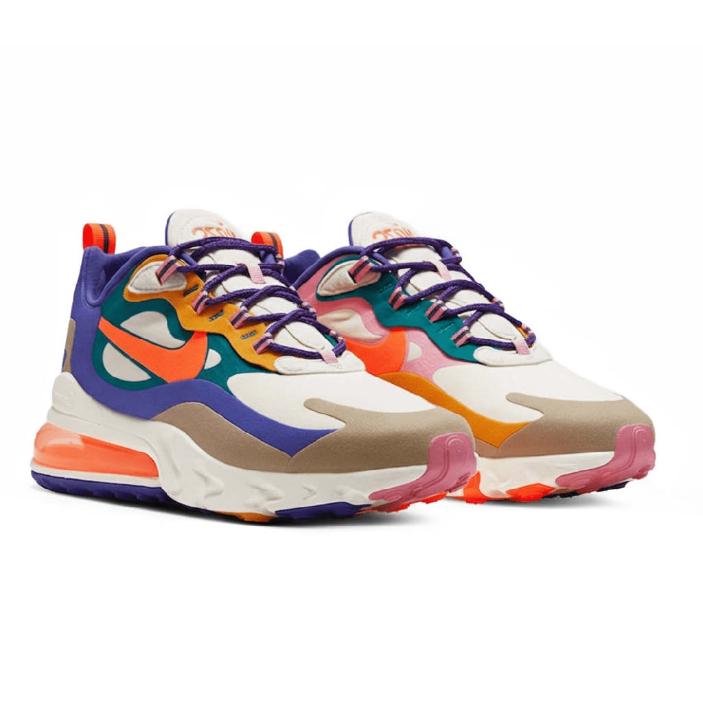 נייקי Air Max 270 React “ACG” מביא עיצוב בהשראת חוץ, עם שילוב גוונים ארציים ונגיעות צבע חזקות שמזכירות את סגנון ה-ACG הקלאסי. העליון השכבתי משלב מגוון מרקמים למראה מודרני ובעל נוכחות, בעוד שסוליית ה-React יחד עם יחידת ה-Air הגדולה מספקות ריכוך חלק ונוחות לאורך כל היום. צבעוניות זו מחברת בין השראה של שבילים לבין סטייל עירוני יומיומי.