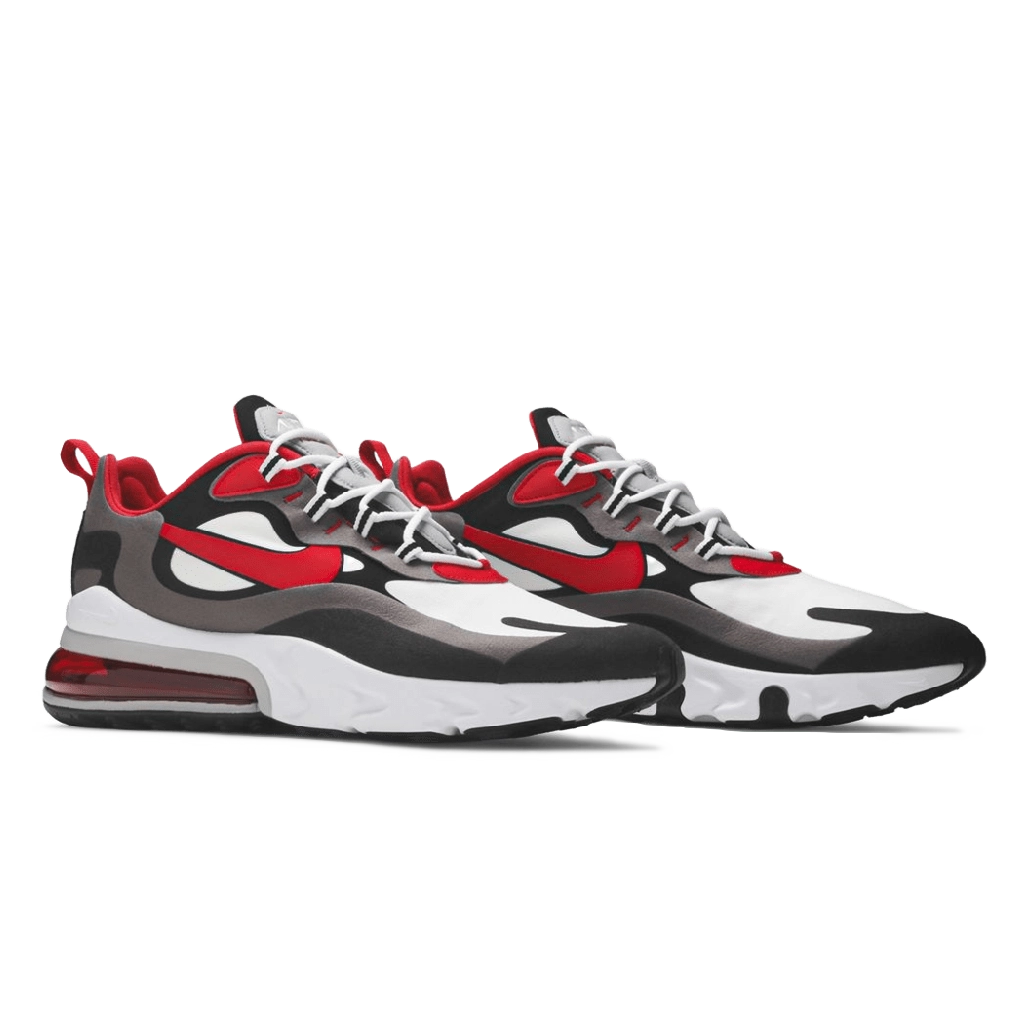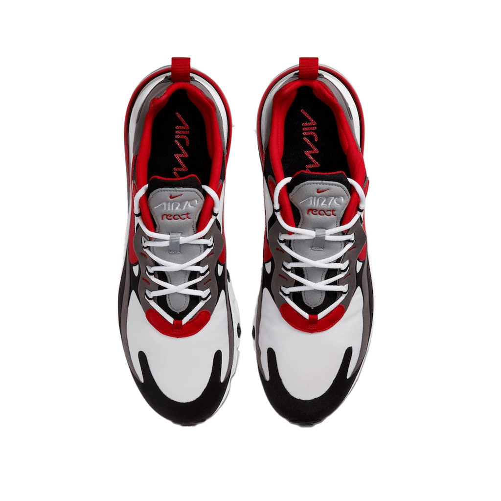פרשנות נועזת ל-Nike Air Max 270 React בשילוב שחור ו-University Red. מגיע עם רשת נושמת וריכוך React תגובתי.
