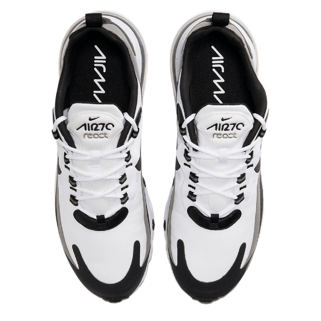 Nike Air Max 270 React “Oreo” משלב נוחות רכה של React ותמיכת Max Air עם עיצוב נקי בשחור ולבן. מושלם ללוקים יומיומיים וספורטיביים.