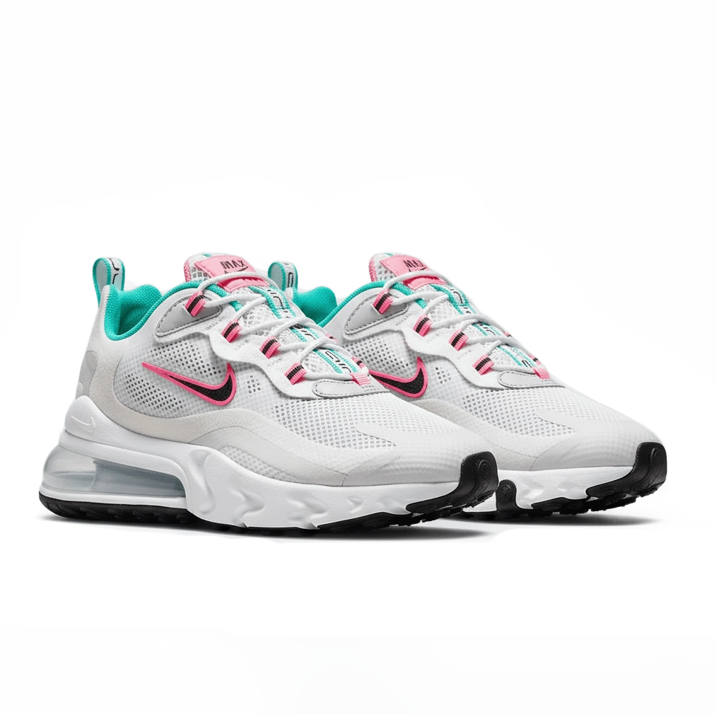 Nike Air Max 270 React “South Beach” משלב צבעים טרופיים נועזים עם נוחות אייקונית של סוליית React. עליונית רשת וחומרים סינתטיים קלים, יחד עם יחידת Max Air 270, מספקים תמיכה רכה ונוחה לאורך כל היום. צבעי South Beach המשלבים ורוד, טורקיז וגווני סגול עדינים יוצרים מראה כיפי ואנרגטי שמתבלט בלוקים ספורטיביים ויומיומיים כאחד.