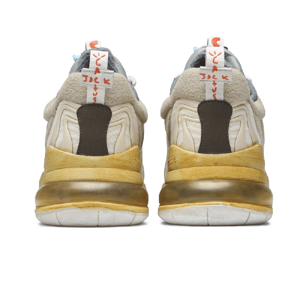 Nike Air Max 270 React “Travis Scott Cactus Trails” משלבת נוחות אייקונית עם מראה בגווני חום בהשראת קולקציית Cactus Trails. עליונית רשת ושכבות סוייד, סוליית React קלה ויחידת Max Air 270 מספקים תמיכה רכה ונוחה לאורך כל היום. גווני החום והבז עם פרטים עדינים יוצרים מראה קשוח אך אלגנטי, שהופך את הדגם לנעלי מובחן למראה יומיומי ולסגנון רחוב.