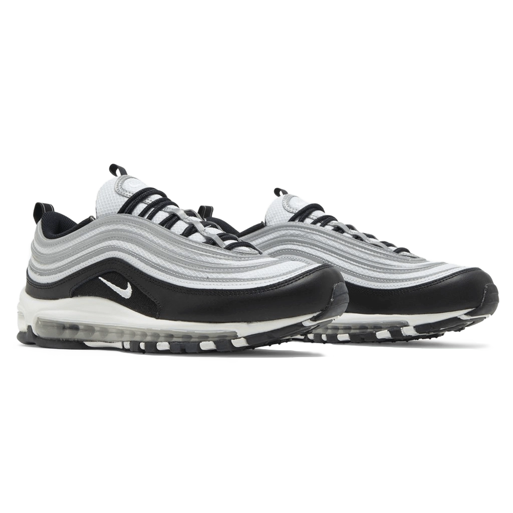 נעלי Nike Air Max 97 “Black Metallic Silver” משלבות נגיעה מטאלית עם הסילואטה האייקונית בהשראת קווים גלים למראה מודרני ובולט. עשויה מטקסטיל וחומרים סינתטיים איכותיים לנוחות ועמידות לאורך כל היום. סוליית Air גלויה לאורך כל הסוליה מספקת ריפוד רספונסיבי, בעוד שפרטים מחזירי אור מוסיפים נראות וסגנון רחוב מודרני לעיצוב הקלאסי.