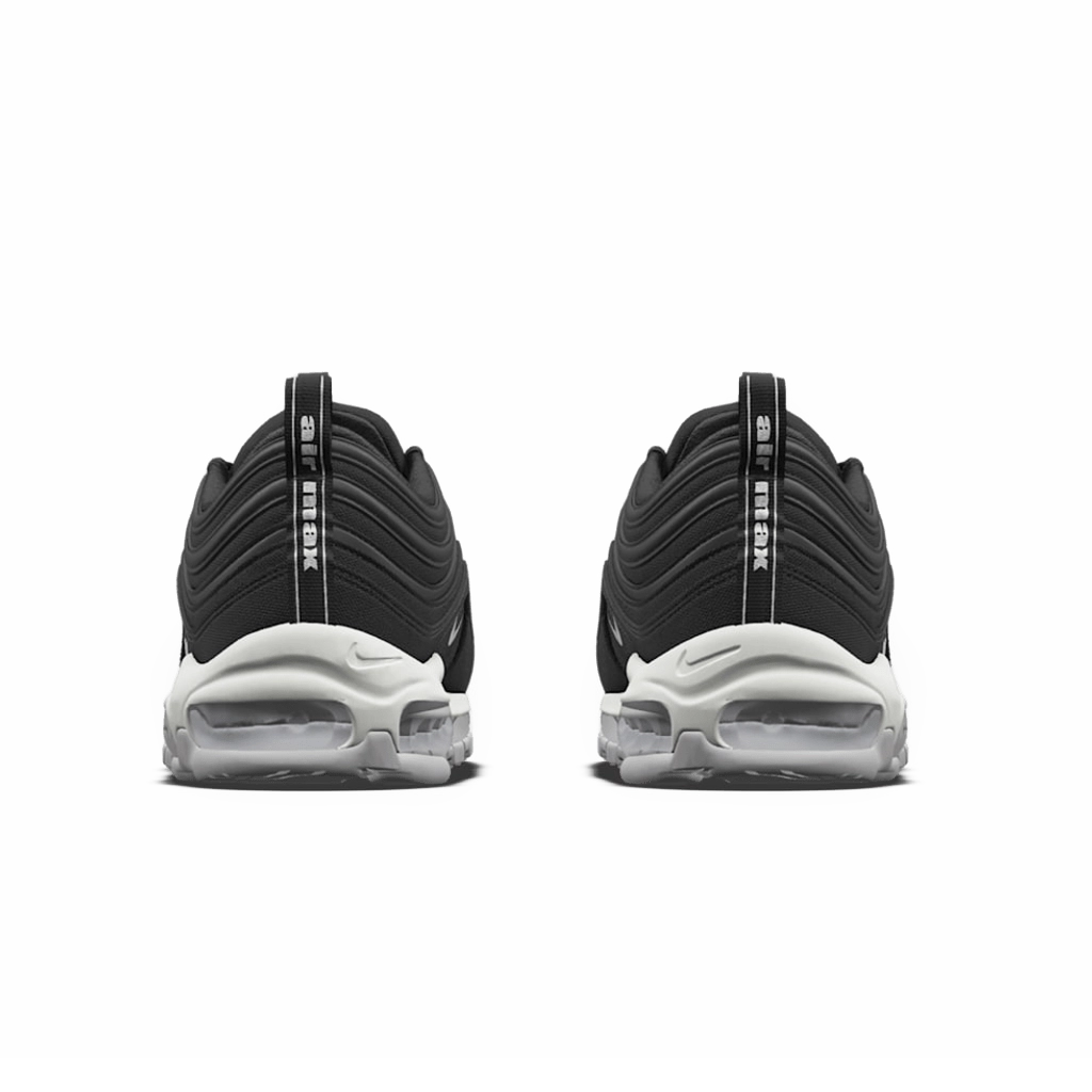 Air Max 97 שחור ולבן קלאסיות עם עיצוב גלים אייקוני.