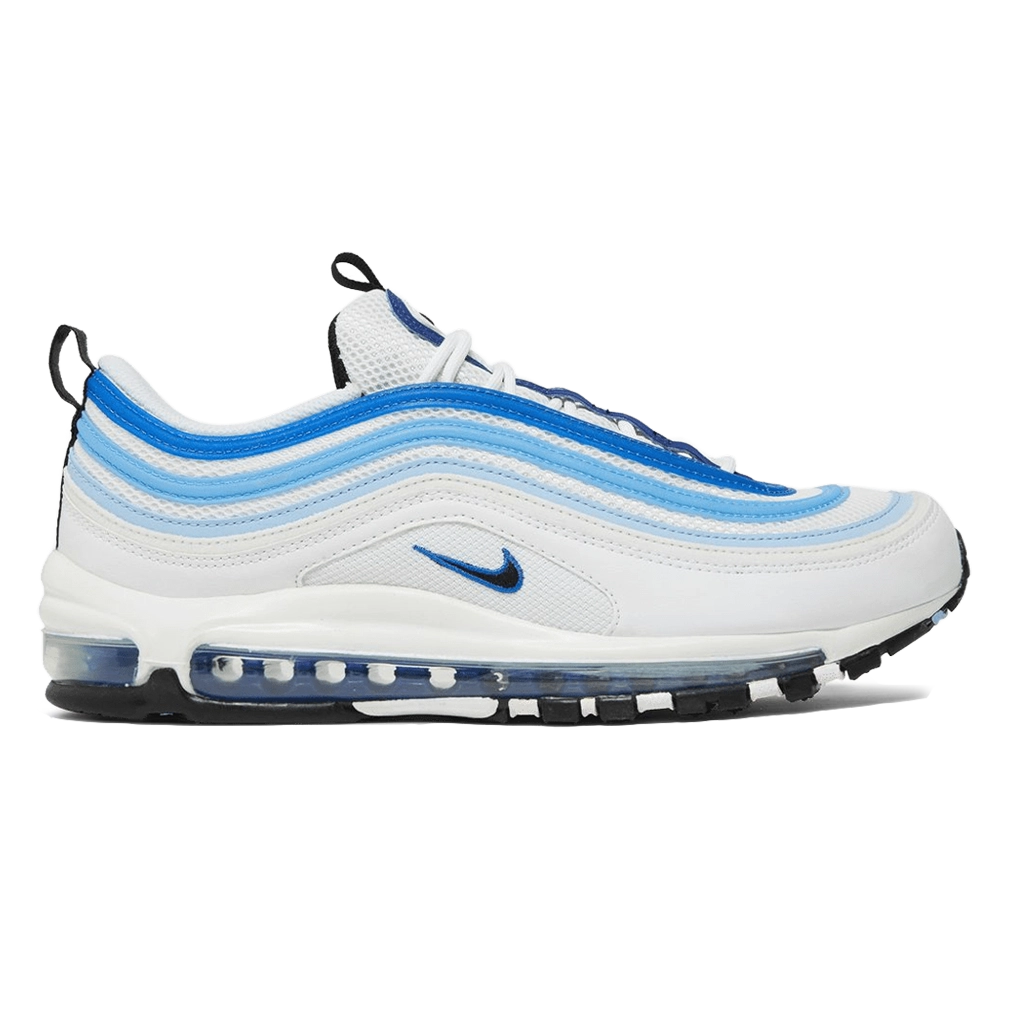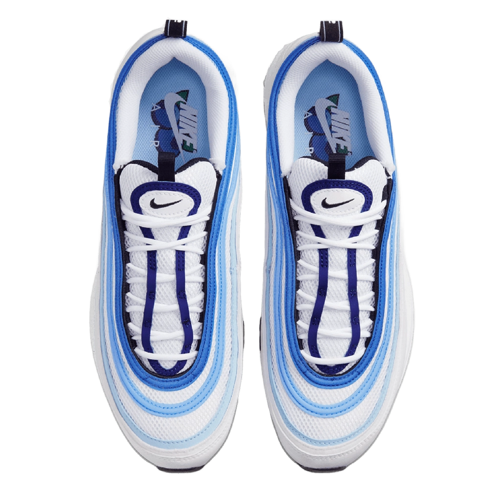 נעלי Nike Air Max 97 “Blueberry” מציגות צבע כחול עמוק וחיוני על הסילואטה הקלאסית בהשראת קווים גלים. עשויה מטקסטיל וחומרים סינתטיים איכותיים לנוחות ועמידות לאורך כל היום. סוליית Air גלויה לאורך כל הסוליה מספקת ריפוד רספונסיבי, בעוד שפרטים מחזירי אור מוסיפים נראות וסגנון רחוב מודרני לעיצוב הקלאסי.