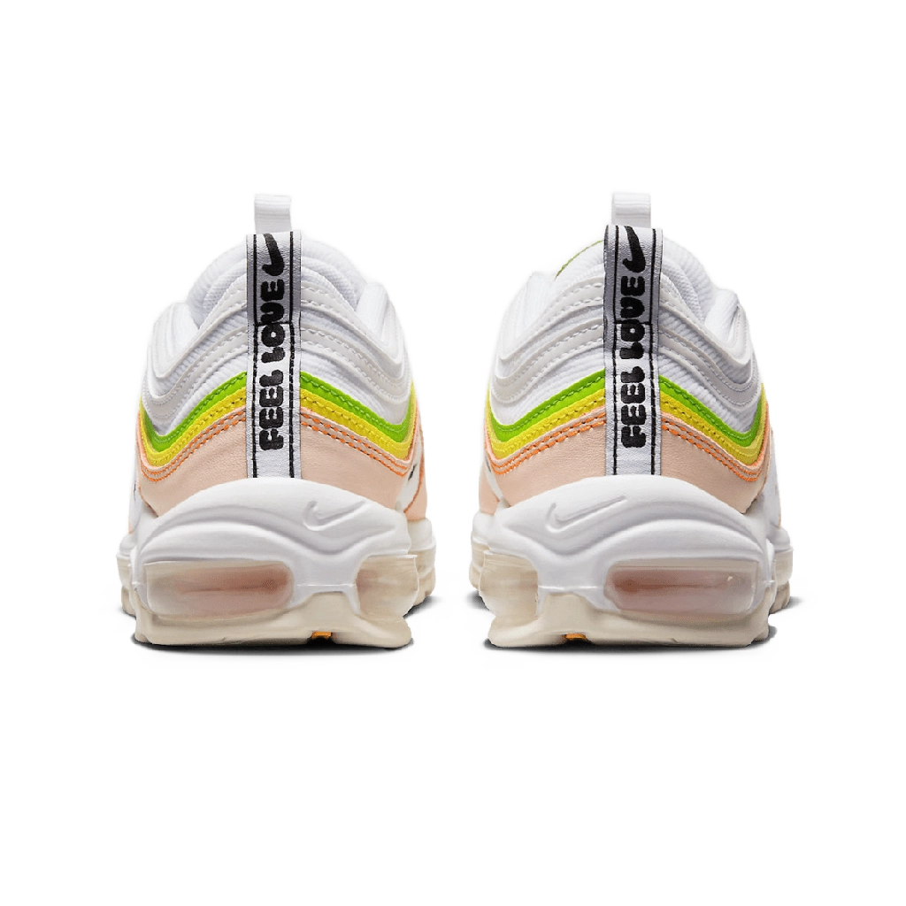 נעלי Nike Air Max 97 “Feel Love” מציעות גרסה טרייה וצבעונית לעיצוב הגלים הקלאסי. בסיס לבן רך משתלב עם נגיעות ורודות וסגולות פסטליות, ליצירת מראה קליל ואופנתי. עשויה מעור וטקסטיל איכותיים לנוחות ועמידות לאורך כל היום. סוליית ה-Air הגלויה לאורך כל הסוליה מספקת ריפוד רספונסיבי, בעוד שפרטים מחזירי אור מוסיפים נראות ומראה רחוב מודרני ומעודן.