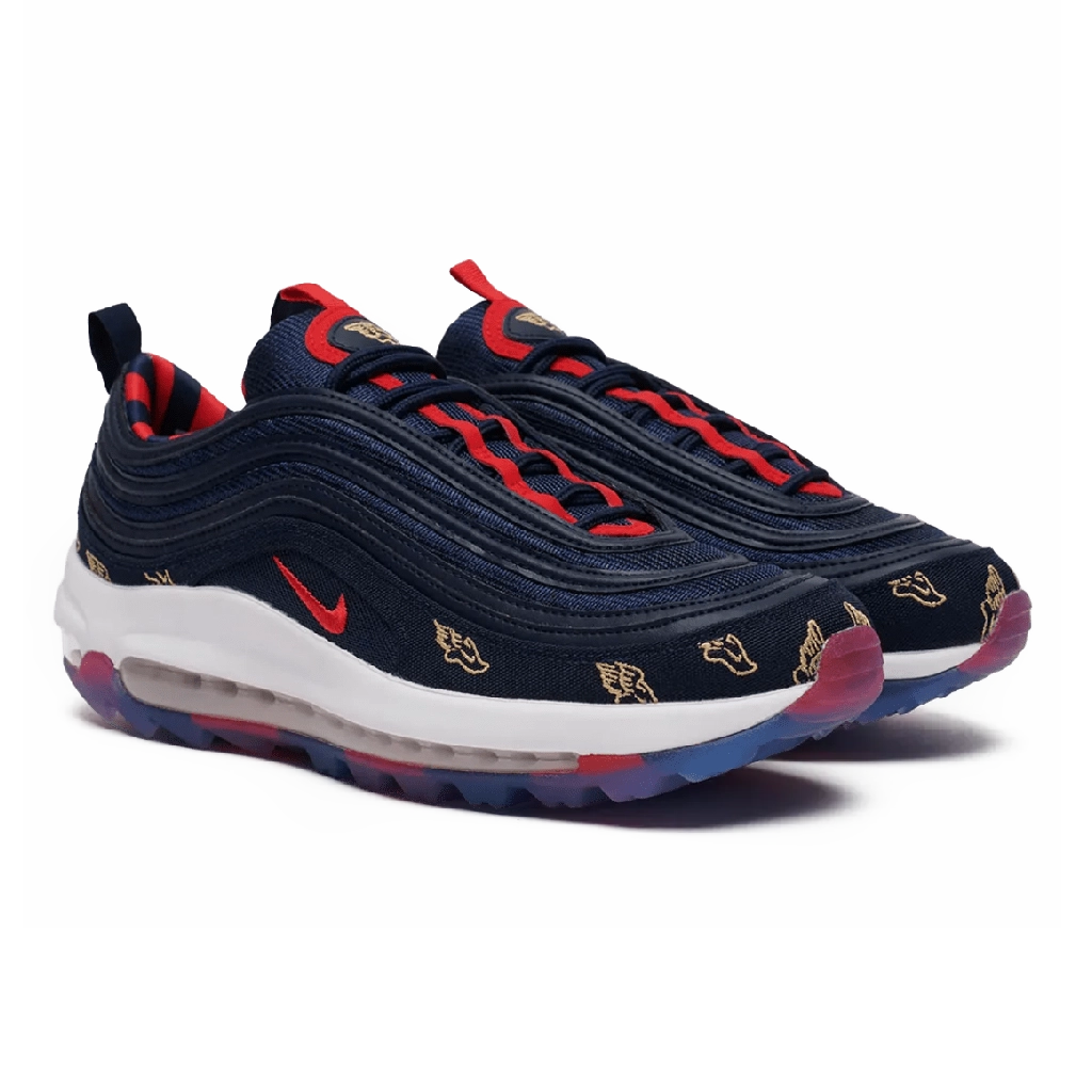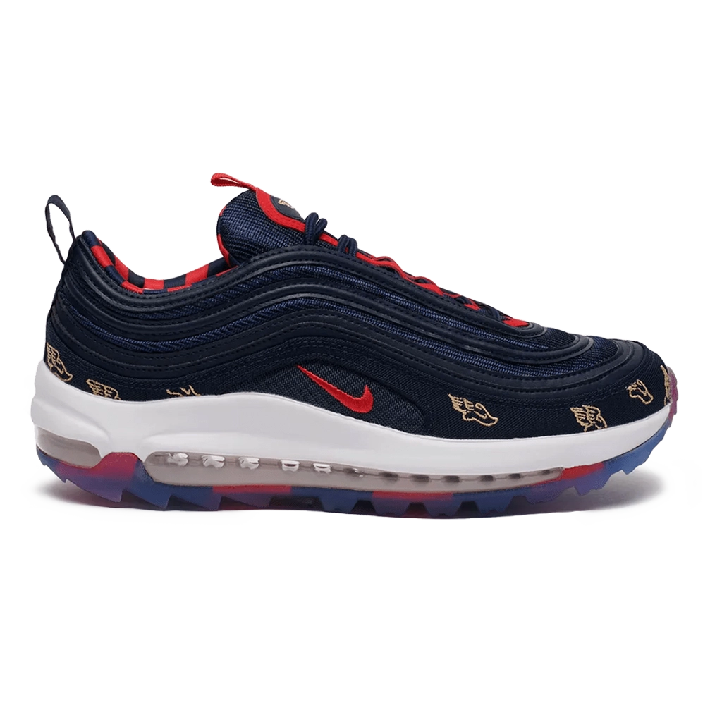 Nike Air Max 97 Golf “Wing It Obsidian” משלב את עיצוב הגלים האייקוני של Air Max 97 עם סוליית גולף ייעודית לביצועים גבוהים, ליצירת שילוב מרשים בין סטייל לפונקציונליות. הגוון הכהה של Obsidian מקבל נגיעות עיצוב בהשראת עולם התעופה, בעוד יחידת ה-Air לכל אורך הסוליה מספקת נוחות חלקה ומרגיעה. זהו דגם בעל נוכחות חזקה המתאים גם למגרש הגולף וגם ליום-יום.