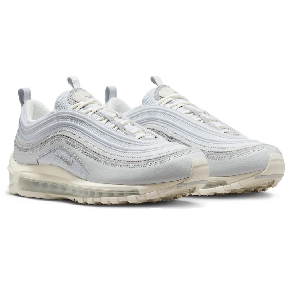 נעלי Nike Air Max 97 “Pure Platinum Wolf Grey Sail” מציעות פרשנות מודרנית ואלגנטית לעיצוב הגלים האייקוני. שילוב הרמוני של גווני Pure Platinum, Wolf Grey ו-Sail מעניק מראה רב-שימושי ואופנתי שמתאים לשימוש יומיומי. עשויה מחומרים איכותיים עם סוליית Air גלויה לאורך כל הסוליה לריפוד רספונסיבי ונוחות ממושכת. פרטים מחזירי אור מדגישים את הסילואטה, לשילוב מושלם של פונקציונליות וסגנון.