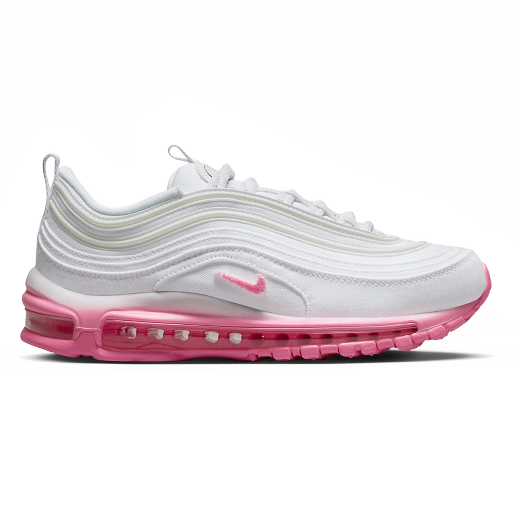 נעלי Nike Air Max 97 “White Pink Spell” מציעות פרשנות רעננה עם נגיעות נשיות לעיצוב הגלים האייקוני. בסיס לבן נקי משתלב עם שכבות בגוון Pink Spell רך, ליצירת מראה מודרני ומעודן. עשויה מחומרים איכותיים המעניקים עמידות ונשימה קלה, בעוד שסוליית ה-Air הגלויה לאורך כל הסוליה מספקת נוחות וריפוד רספונסיבי לאורך כל היום. מושלמת למי שמחפש סניקרס מסוגנן ורב-שימושי.