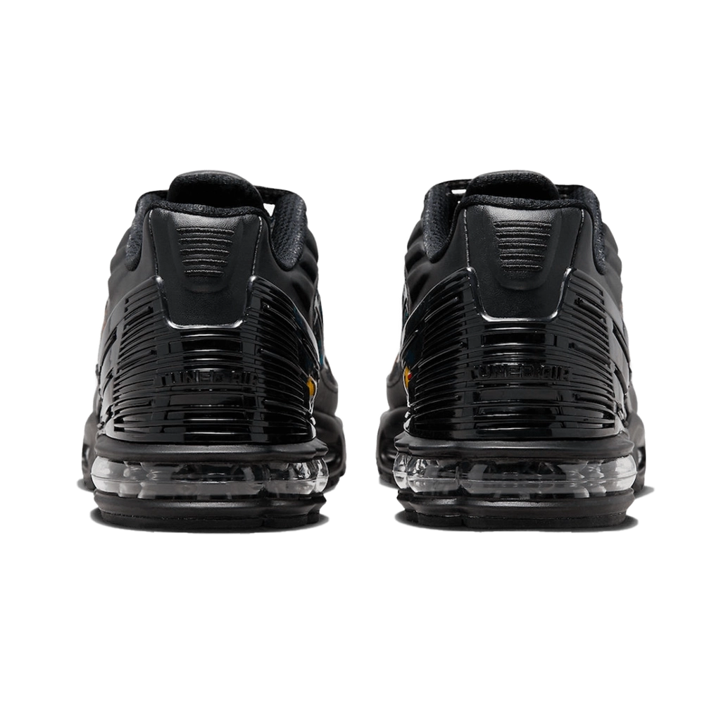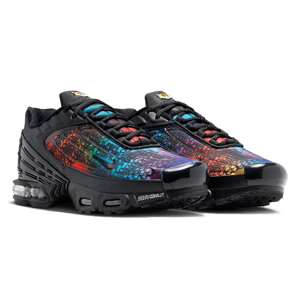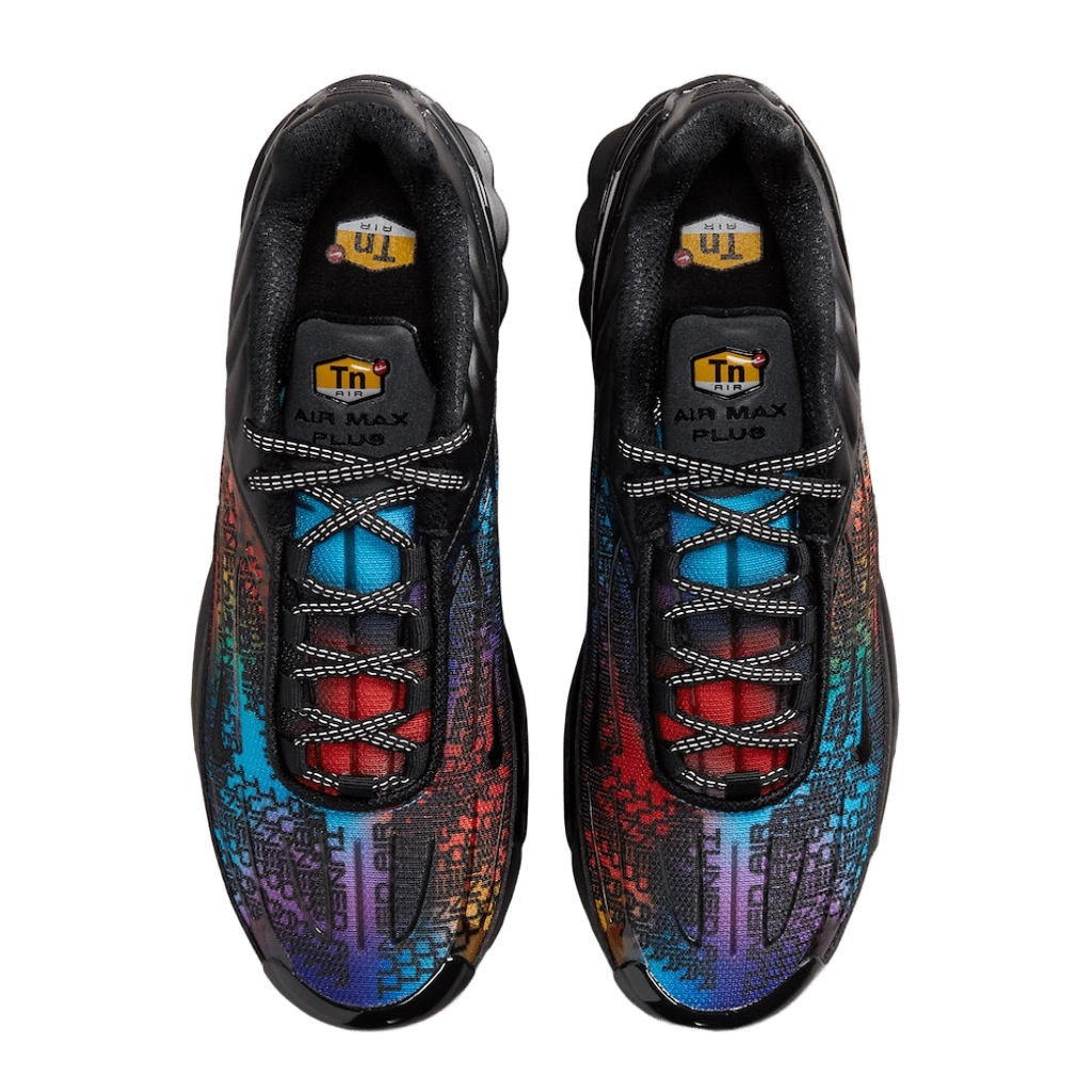 Nike Air Max Plus 3 Premium בגרסת Rainbow Gradient מביא נוכחות צבעונית וססגונית לכל צעד. הדגם משלב בין עיצוב נוסטלגי מתחילת שנות ה-2000 לבין גרדיאנט צבעים מרהיב בגוון קשת, עם שכבות שחורות מודגשות ופרטי TPU ייחודיים. רפידת ה-Tuned Air בעקב ובקדמת הסוליה מספקת רכות תגובתית, בזמן שעליונית הרשת שומרת על קלילות ואוורור לאורך כל היום.