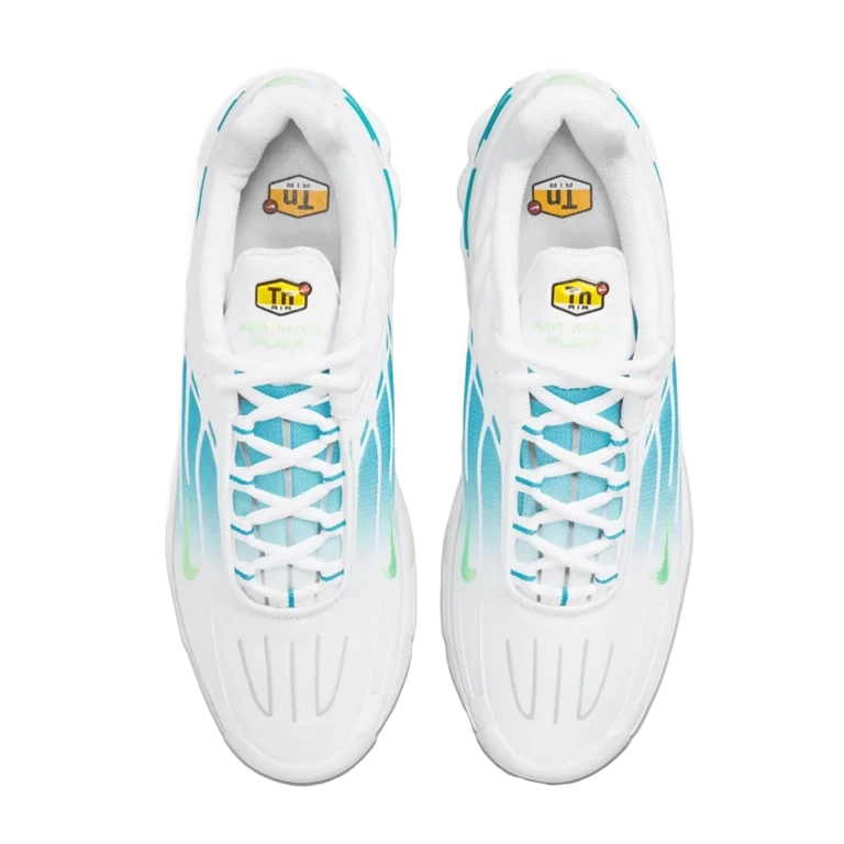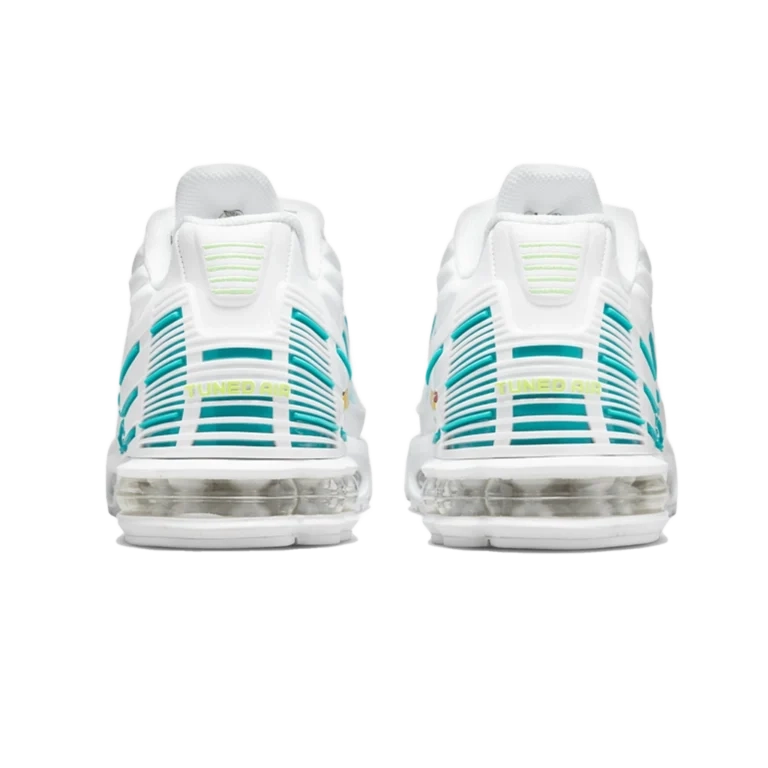 ה-Nike Air Max Plus 3 חוזר בצבעוניות קיצית מרעננת שמביאה אנרגיה לכל צעד. עם בסיס לבן נקי בשילוב גווני Lime Glow, Aquamarine ו-Pure Platinum, הדגם הזה משלב עיצוב עתידני עם ה-DNA הקלאסי של סדרת Air Max. רשת נושמת, חיזוקי TPU יציבים, וריפוד Max Air כפול יוצרים נעל שמשדרת נוכחות וגם מספקת נוחות לאורך כל היום.