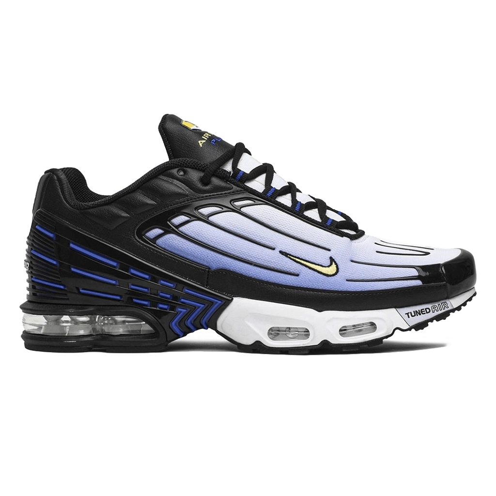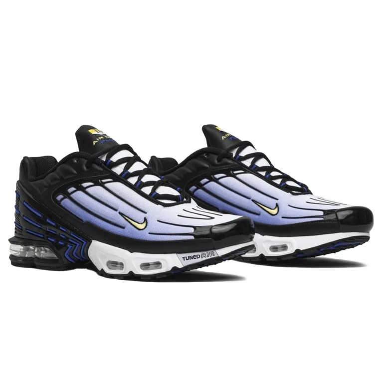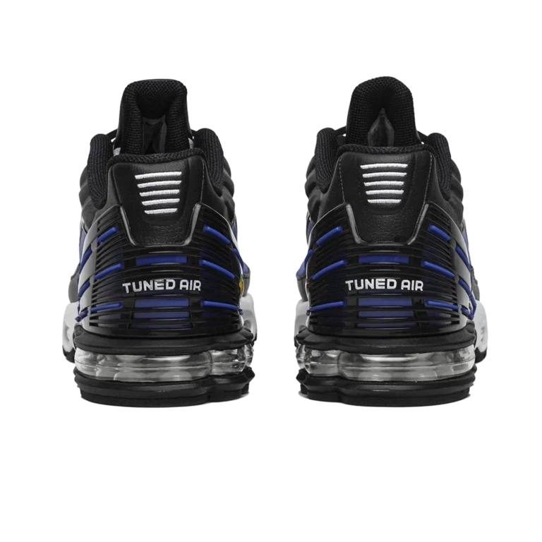 נייקי אייר מקס פלוס 3 OG בצבעים שחור, שאמוּע, הייפר בלו ולבן מחזיר את אחת הסילואטות האייקוניות של נייקי בעיצוב רטרו נועז עם ביצועים עדכניים. החלק העליון כולל גראדיאנט מרהיב של הייפר בלו המתמזג עם שחור עמוק, יחד עם נגיעות לבנות ופרטי שאמוע שמחברים למורשת המקורית. ריפוד Tuned Air מבטיח נוחות רספונסיבית לאורך כל היום, והעקב המעוצב מוסיף גם יציבות וגם נוכחות עיצובית מודרנית. שילוב מושלם בין נוסטלגיה ואופנה עכשווית.