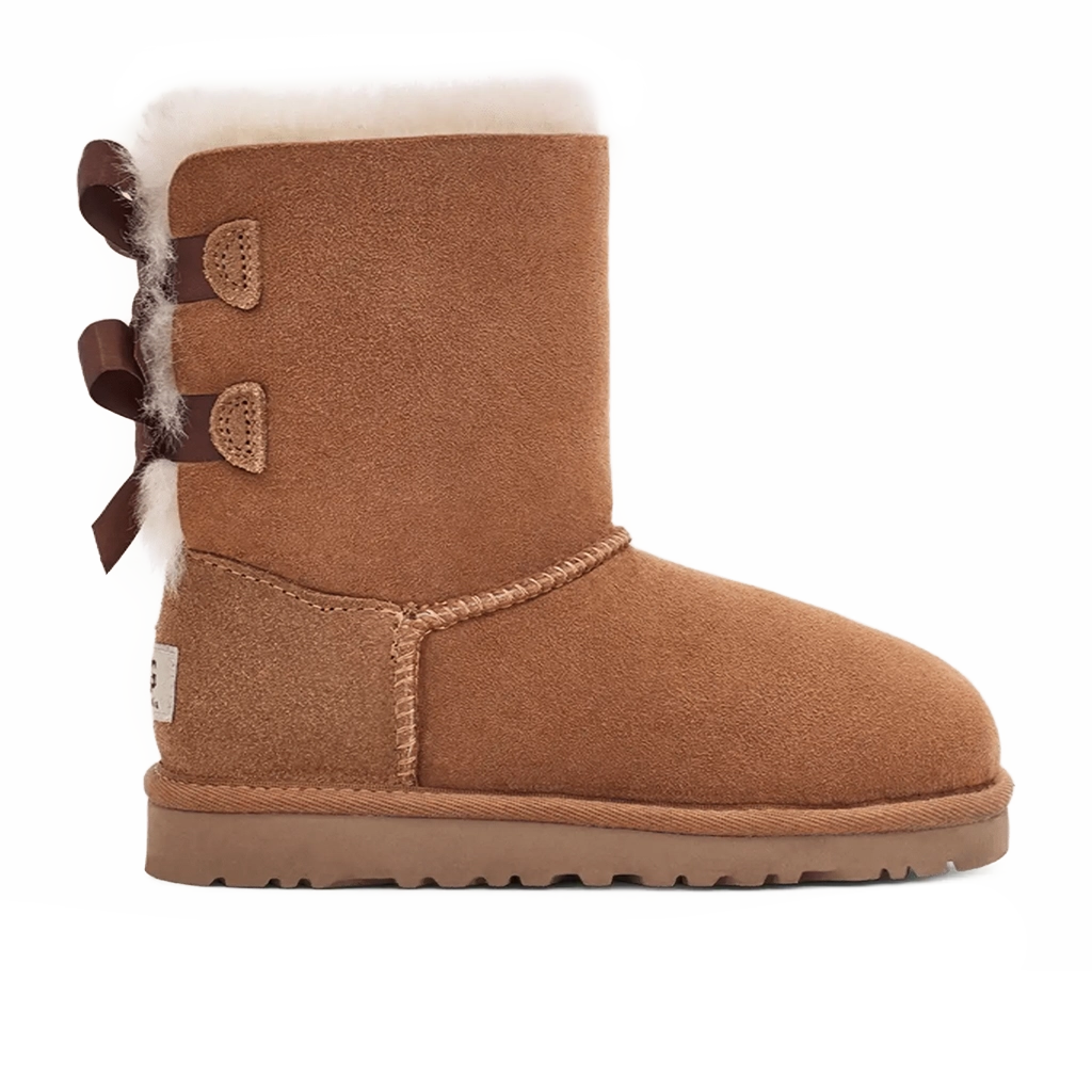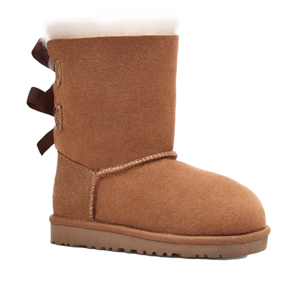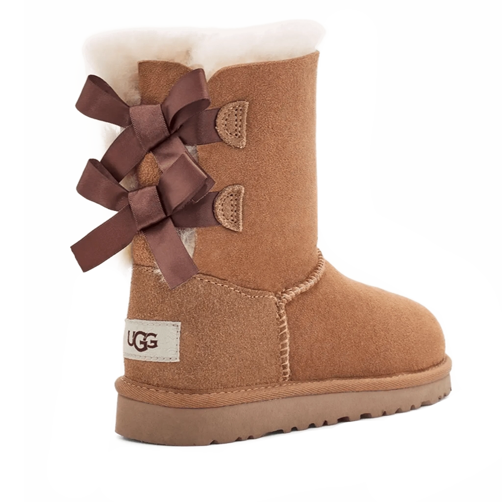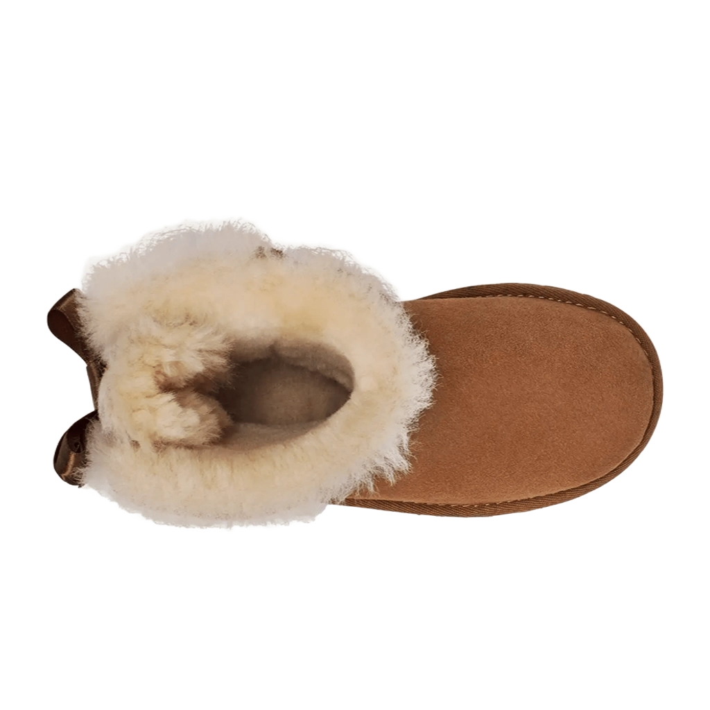 מגף ה־UGG Bailey Bow II בצבע ערמון משלב נוחות צמר כבשים עם פרטי קשת אופנתיים. מגפי קרסול מושלמים לבית ובחוץ.