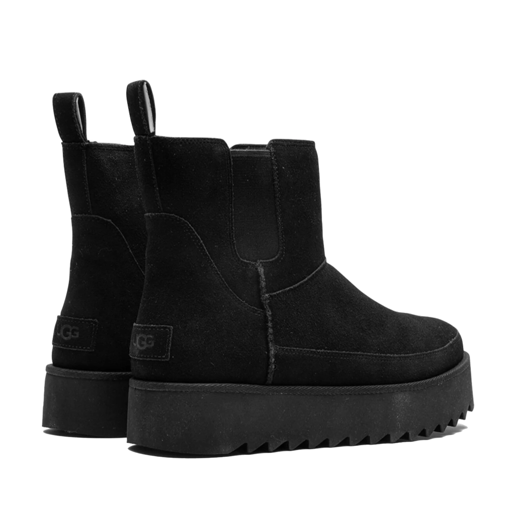 ה-UGG Chelsea Platform Mini בצבע שחור מזמש משלב את סגנון מגפי צ’לסי הקלאסי עם סוליית פלטפורמה מודרנית. עשוי מזמש שחור פרימיום עם מדרס מרופד לנוחות ותמיכה, מגף זה מספק חום, נוחות וסטייל ללא מאמץ. הצורה החלקה והסוליה הפלטפורמית הופכים אותו למושלם ללבישת הופעות יומיומיות או להוספת טוויסט לכל מראה.