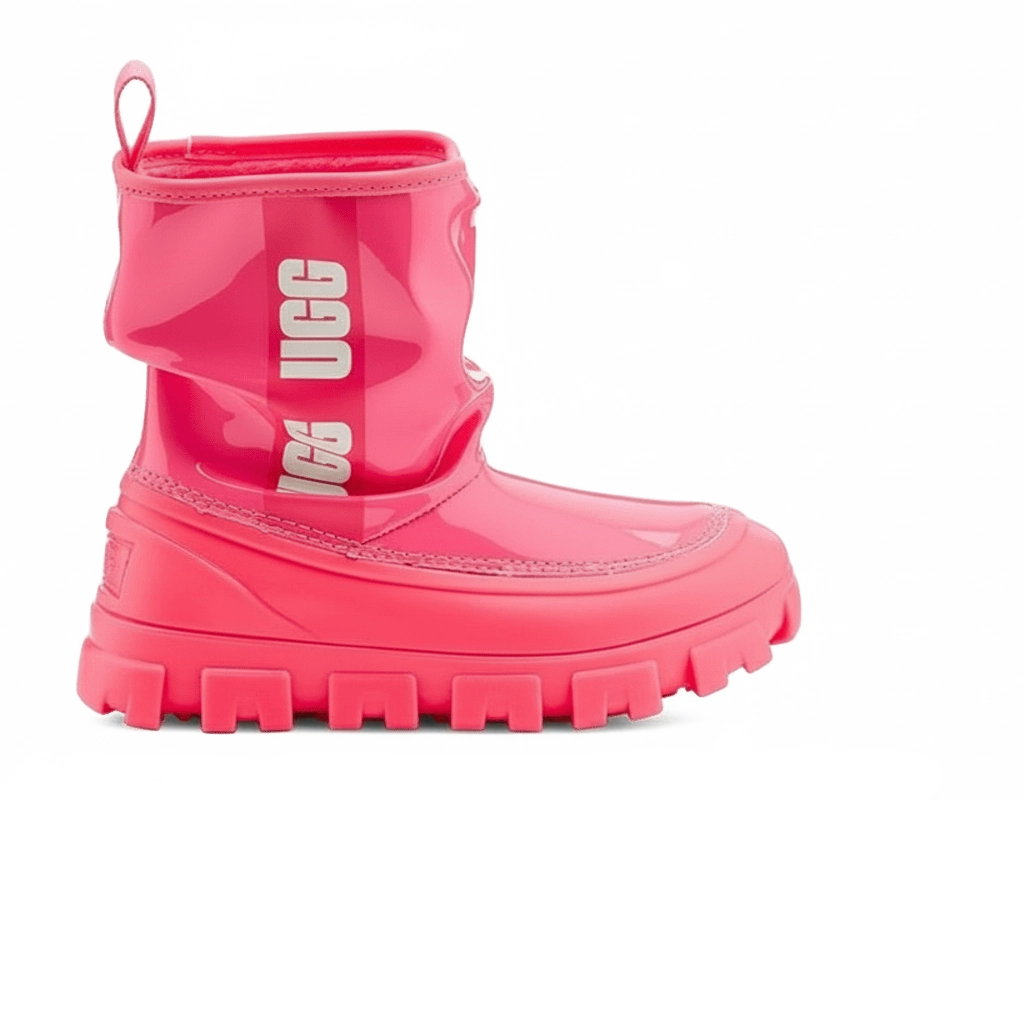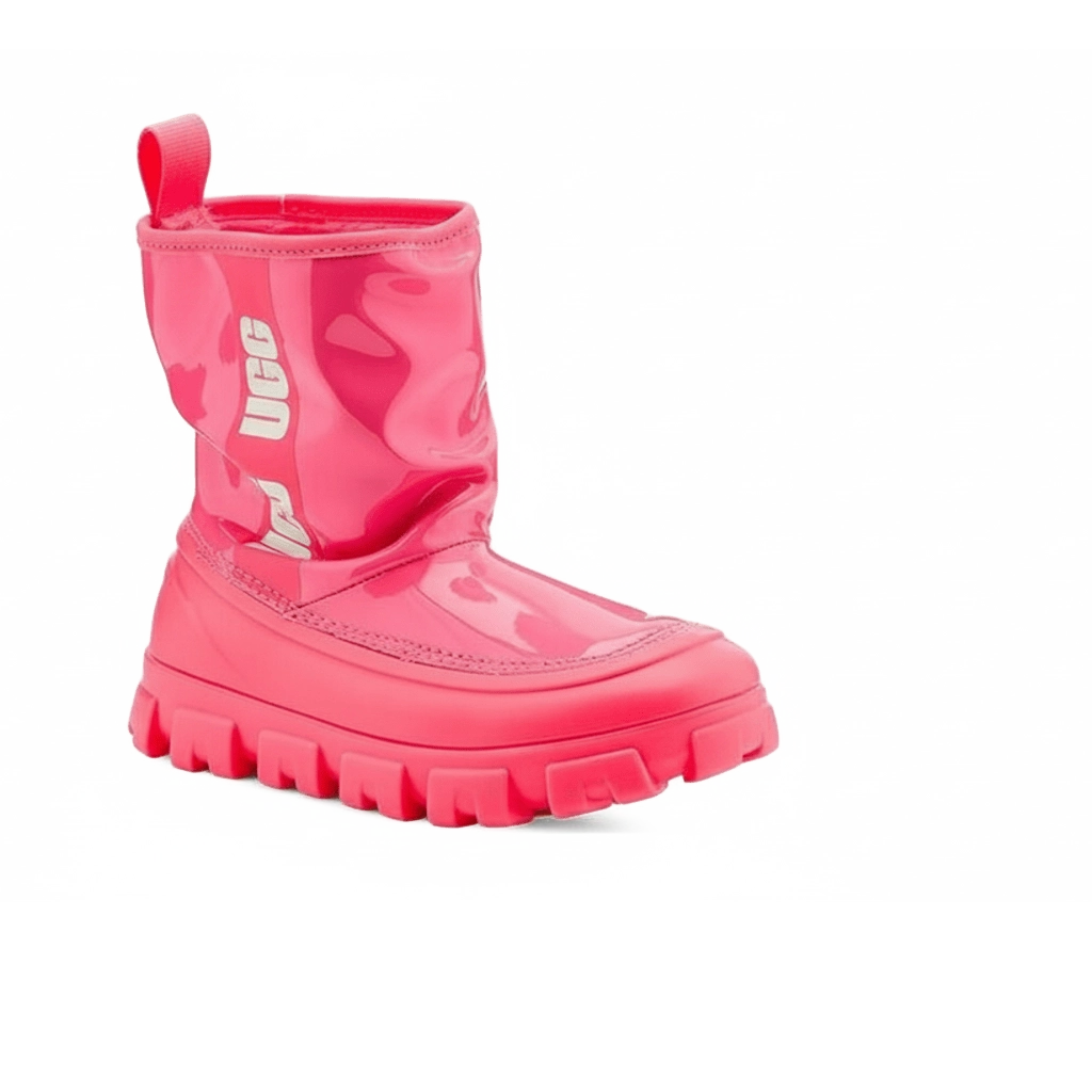 מגף UGG Classic Brellah Mini בצבע Super Coral מביא נגיעה נועזת וצבעונית לעיצוב הקלאסי של המותג. עשוי מחומרים עמידים למים לשמירה על יובש בכל מזג אוויר, עם ריפוד פנימי רך ונעים המעניק תחושת נוחות מושלמת. הצבע הקורלי הבוהק מוסיף מראה רענן ואופנתי, והסוליה הקלה מבטיחה גמישות ואחיזה מצוינת לאורך כל היום. שילוב מושלם בין פרקטיות לסטייל חורפי.