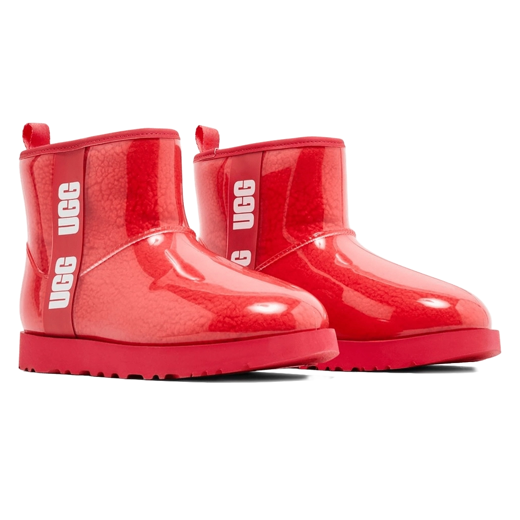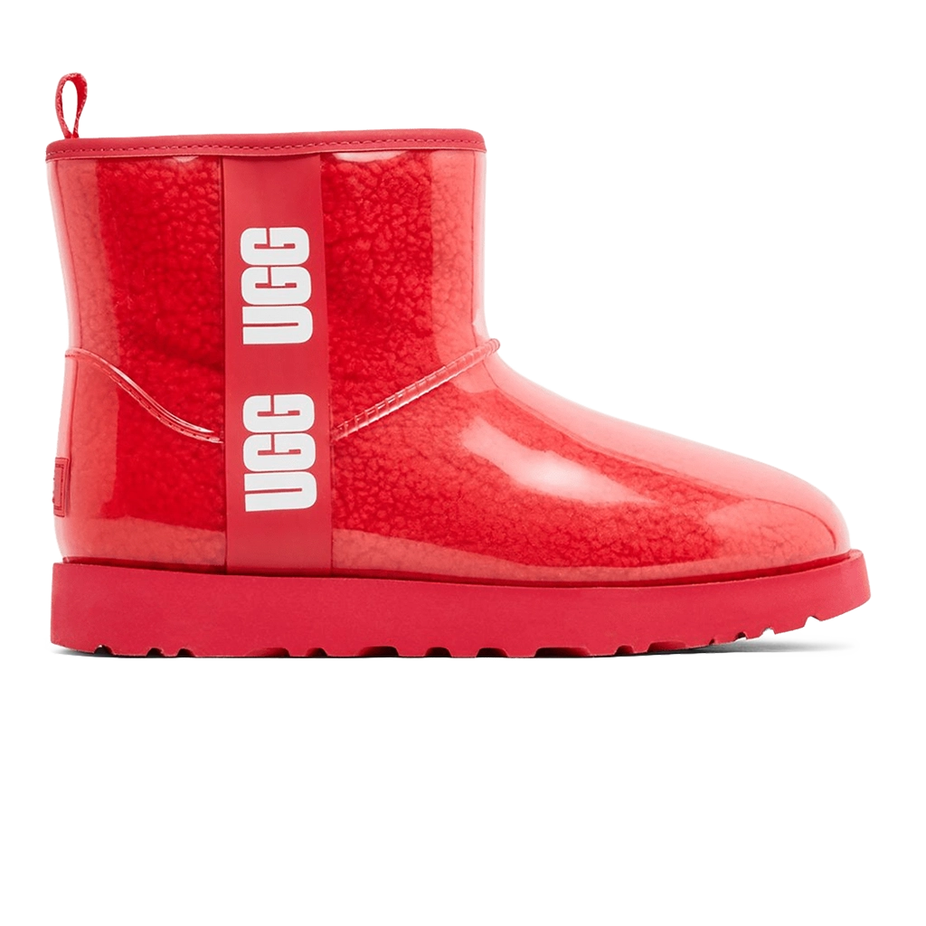הוסיפו נגיעה נשית ורעננה לאוסף הנעליים שלכם עם נעלי UGG Classic Clear Mini בצבע Hibiscus Pink. נעלי מיני אלו כוללות סוליה קלה וריפוד פנימי רך, המספקים נוחות וחום יוצאי דופן. פרטי הפלטפורמה השקופה מוסיפים סגנון מודרני, מה שהופך אותן למושלמות ללבישה יומיומית בבית ובחוץ.