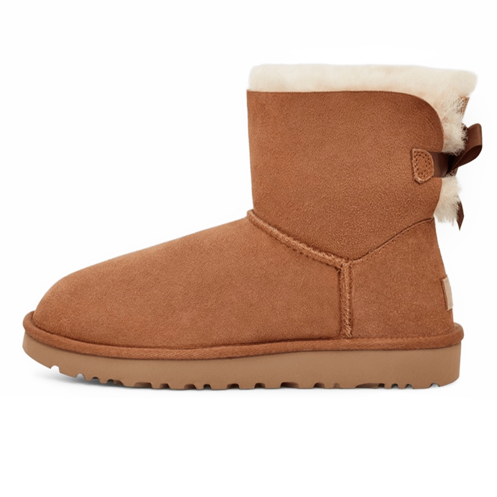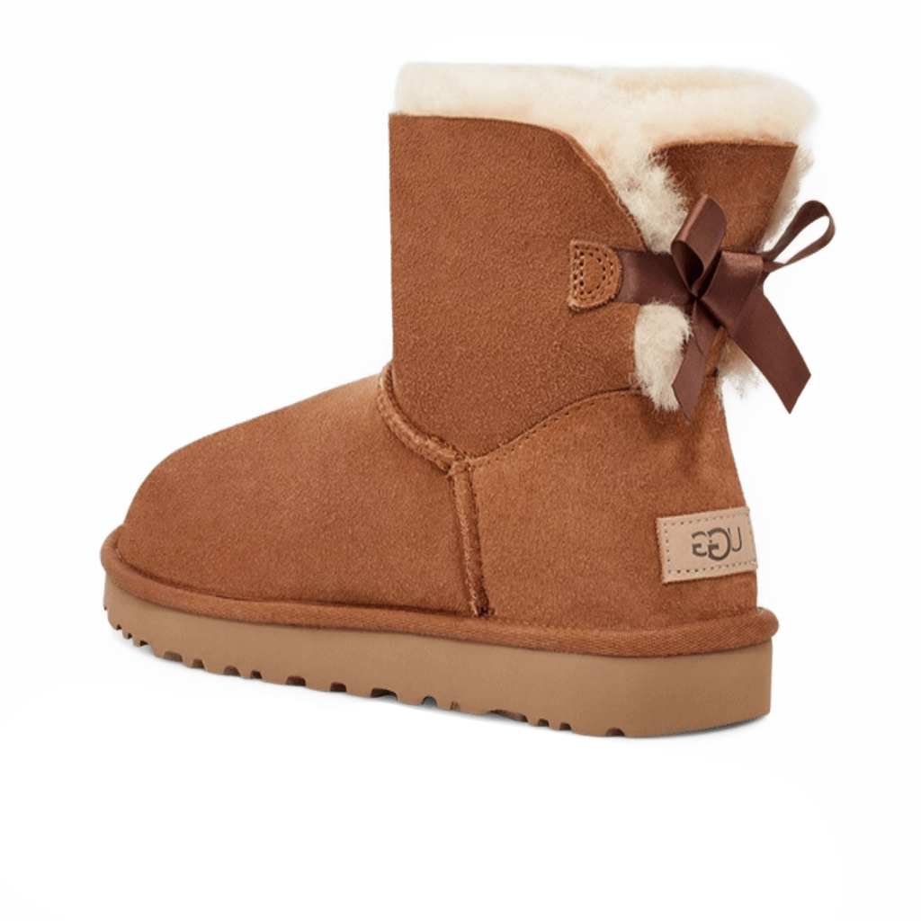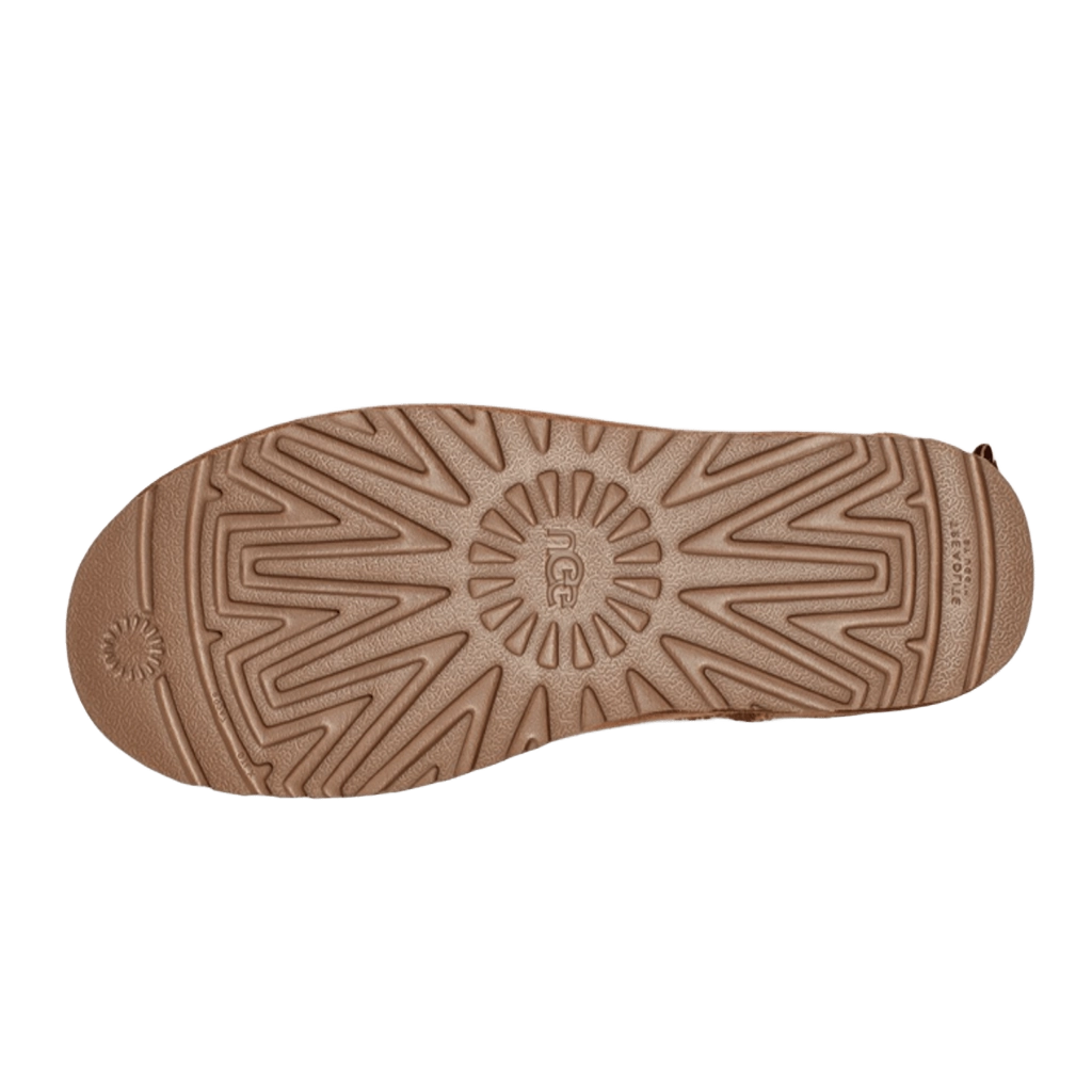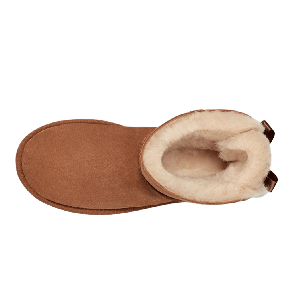 נעלי UGG Mini Bailey Bow II בצבע צ’סטנאט משלבות את הנוחות האייקונית עם נגיעה שובבה של סטייל. עשויות זמש רך עם ריפוד צמר כבשים מפנק, הן מספקות חמימות, עמידות וגמישות לשימוש יומיומי. בחלק האחורי מתנוססים שני סרטי סאטן עדינים, המוסיפים טאץ’ נשי לעיצוב הקלאסי של UGG. עם סוליה קלה ועמידה, הן מתאימות הן לבית והן לחוץ.