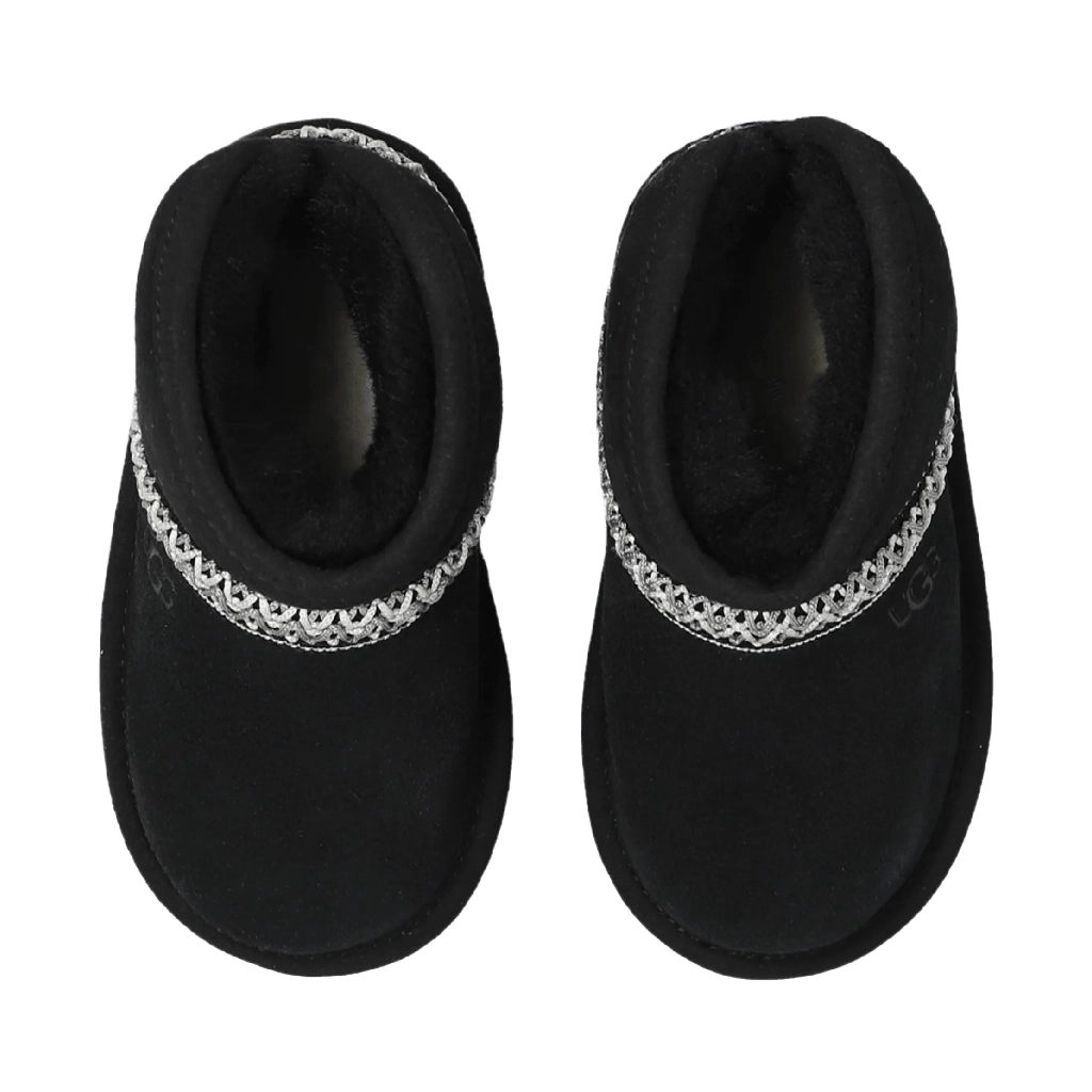 מגף UGG Classic Mini Crescent בצבע שחור משלב חמימות ונוחות עם עיצוב נקי ואלגנטי. עשוי מזמש רך ובטנת כבשים טבעית למראה יומיומי מושלם.