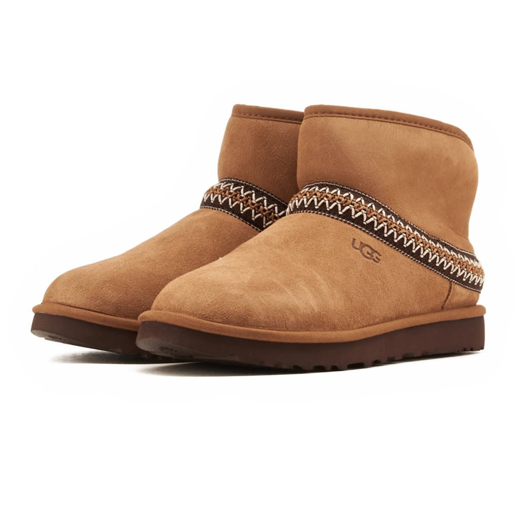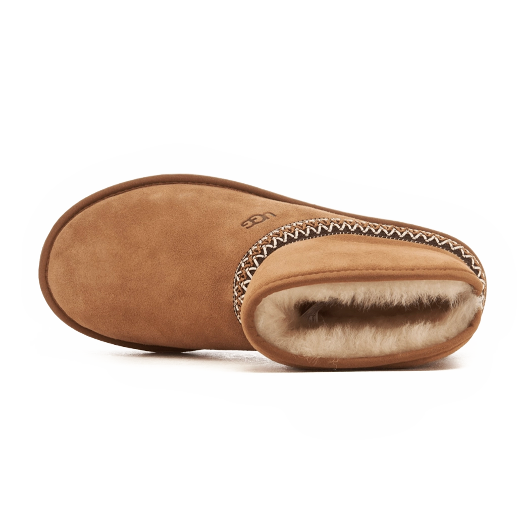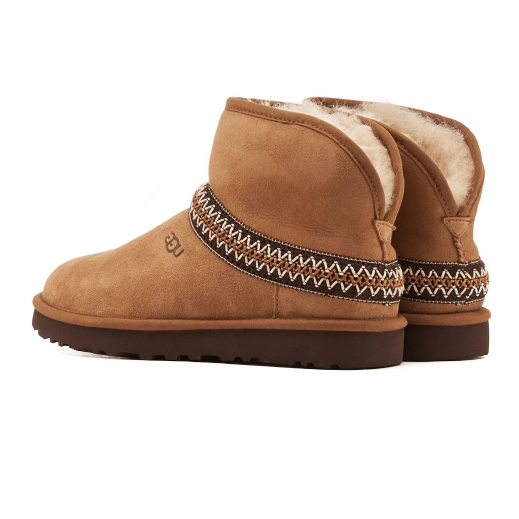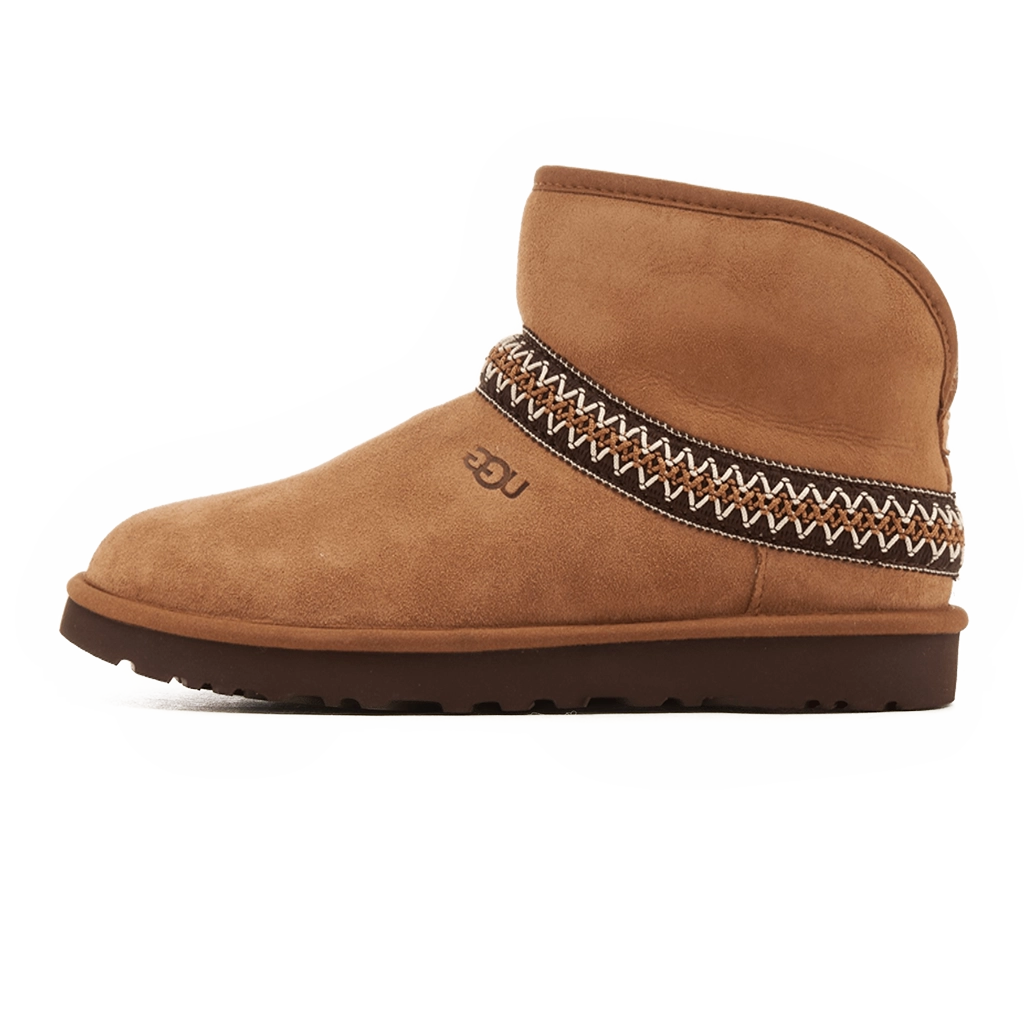 ה-UGG Classic Mini Crescent בצבע Chestnut מציע סגנון קלאסי עם טוויסט מודרני. עשוי מזמש פרימיום ומצופה בבטנת צמר כבשים רכה, מגף זה מספק נוחות וחום מעולים. העיצוב בצורת סהר מעניק מראה ייחודי, בעוד שהסוליה הקלה מבטיחה תמיכה וגמישות לאורך כל היום. מושלם לשימוש יומיומי או פנימי נעים.