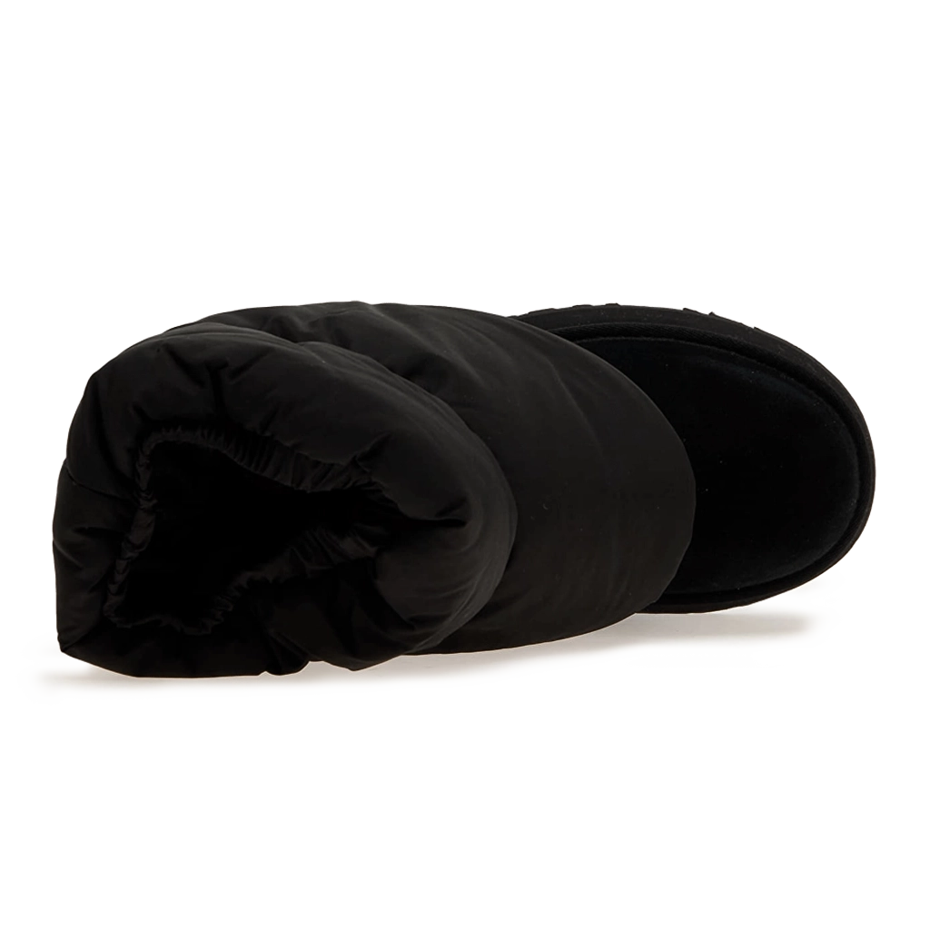 ה-UGG Classic Mini Dipper Puffer בצבע שחור מעניק פרשנות מודרנית ונועזת לסילואט האייקוני עם חלק עליון מניילון במראה פוף וריפוד צמר רך. עם רוכסן צד לנעילה קלה, הנעל משלבת אופנה עם פרקטיות, מספקת נוחות קלילה, אחיזה יציבה ועיצוב עדכני המתאים לבית ולחוץ.