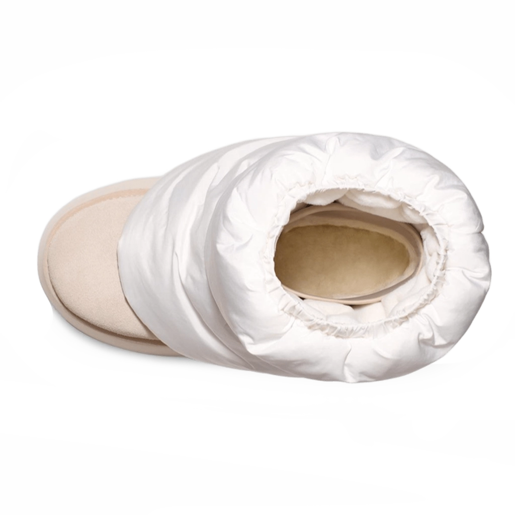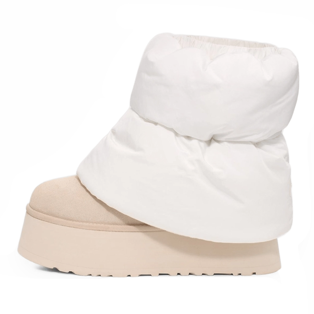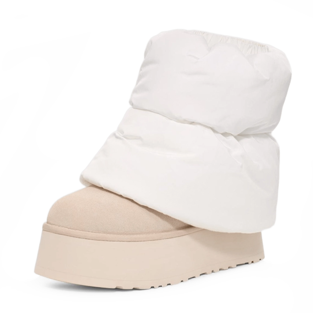 ה-UGG Classic Mini Dipper Puffer בצבע White / Ceramic משלב חמימות נעימה עם מראה פוף מודרני. עדכון עכשווי לסטייל הקלאסי של UGG.