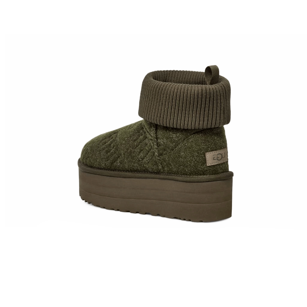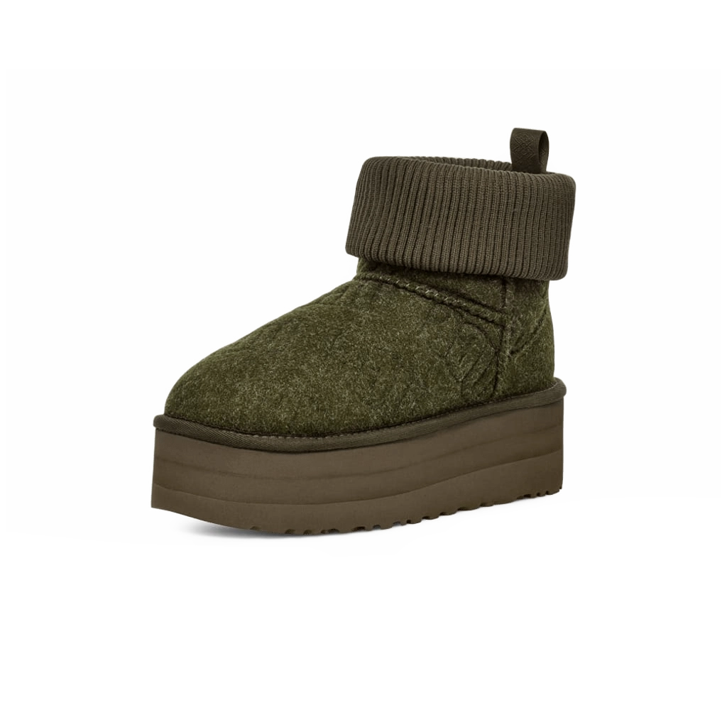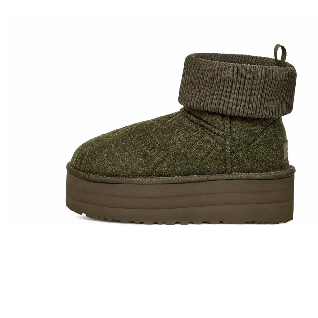 ה-UGG Classic Mini Platform Felted Boot בצבע Forest Night מעלה את המגף הקלאסי לגובה מודרני עם סוליה בפלטפורמה. עשוי מצמר פרימיום וזמש רך, כולל בטנת צמר כבשים מחממת ומפנקת. סוליית הפלטפורמה מוסיפה גובה וסטייל מודרני תוך שמירה על ריפוד לנוחות לאורך כל היום, מושלם להופעות יומיומיות ואופנתיות.