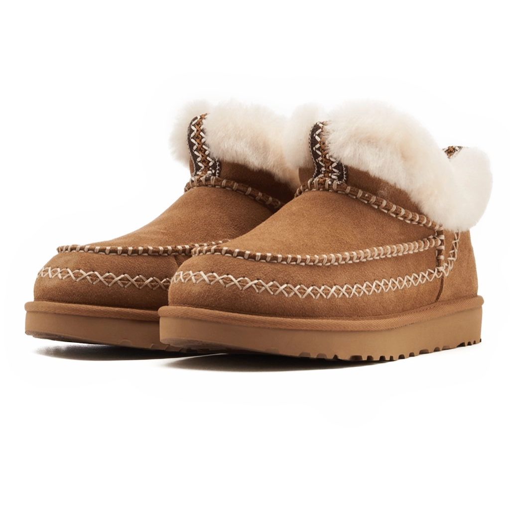 נעלי UGG Classic Ultra Mini Alpine בצבע Chestnut מציעות עיצוב קלאסי עם טוויסט מודרני, בנייה קלה ועמידה ופנים מרופד מפנק. נעליים אלו מיועדות לנוחות וחימום יומיומי, עם סוליה תומכת ועיצוב קל ללבישה. צבע Chestnut מוסיף נגיעה אלגנטית ורב-תכליתית לכל ארון בגדים.