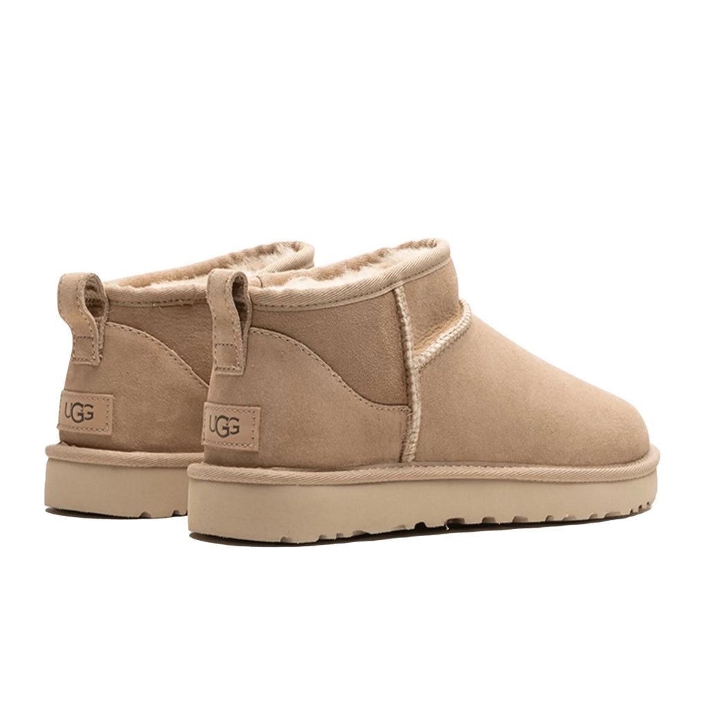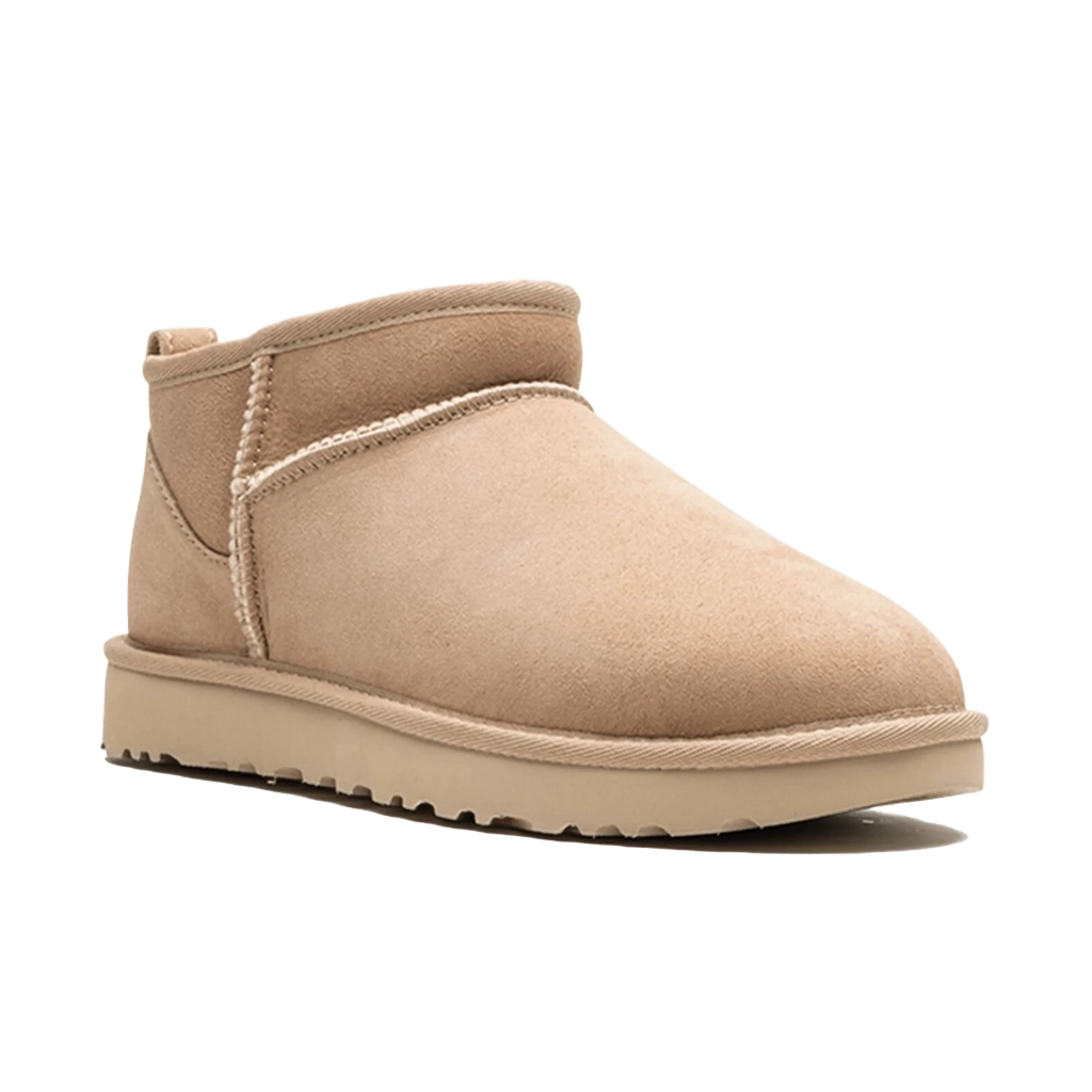 מגפי UGG Classic Ultra Mini בצבע Sand מציעים גרסה מודרנית לסילואט האייקוני של UGG, עם עיצוב נמוך וגמיש המשתלב בקלות עם כל לוק. עשויים זמש פרימיום ומרופדים בצמר כבשים רך, הם מספקים נוחות, חמימות ועמידות לאורך זמן. הסוליה הקלה מעניקה תחושת גמישות מושלמת ליום-יום.