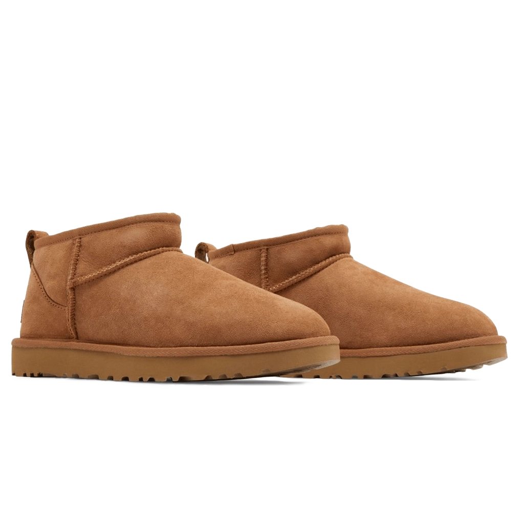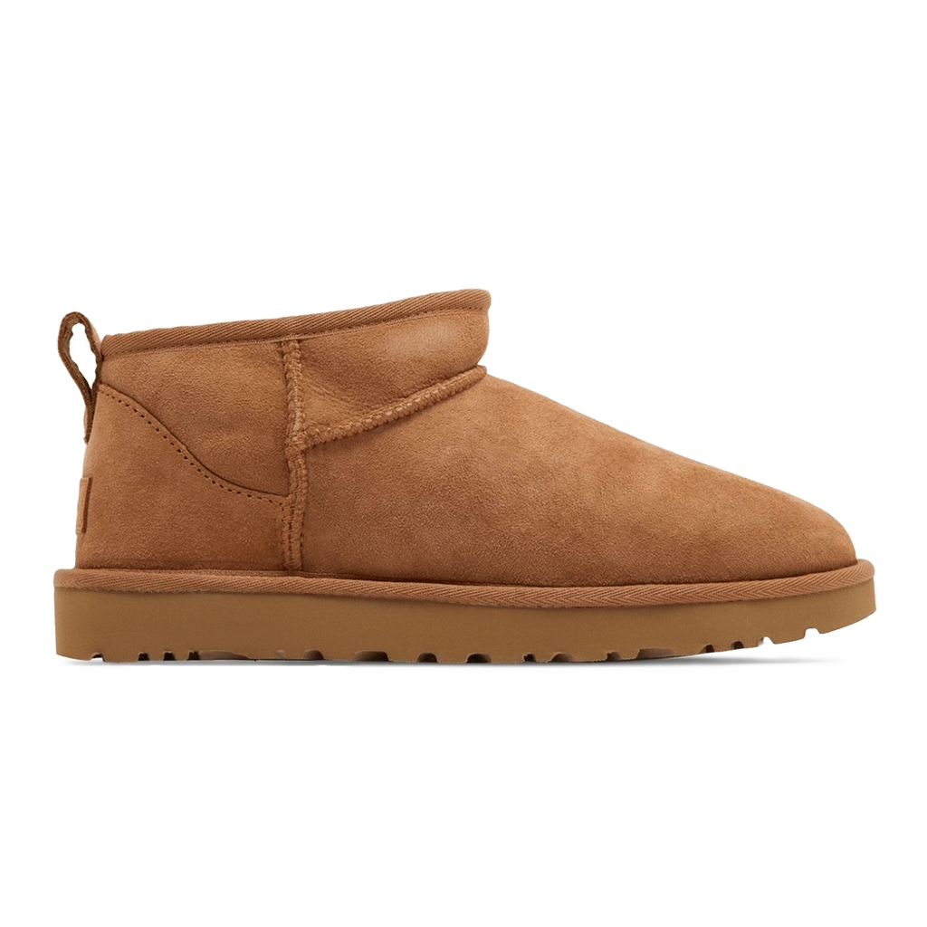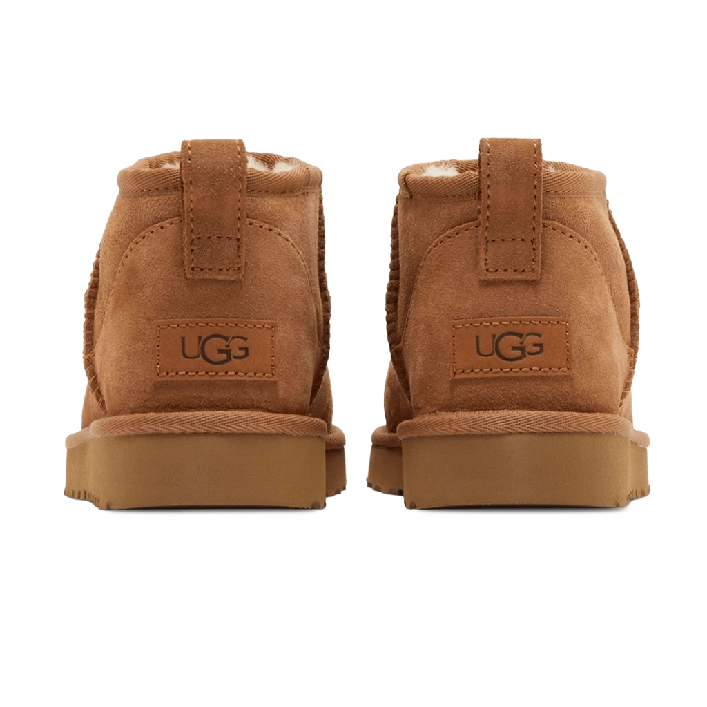 ה-UGG Classic Ultra Mini בצבע Chestnut מביא עיצוב קלאסי עם טוויסט מודרני בזכות גזרה נמוכה ואלגנטית. המגף עשוי זמש איכותי עם ריפוד UGGplush™ משילוב צמר וליוסל, שמספק חמימות, רכות ונוחות יוצאת דופן. הסוליה הקלה מוסיפה גמישות ועמידות, לשימוש יומיומי מבלי לוותר על המראה האייקוני של UGG.