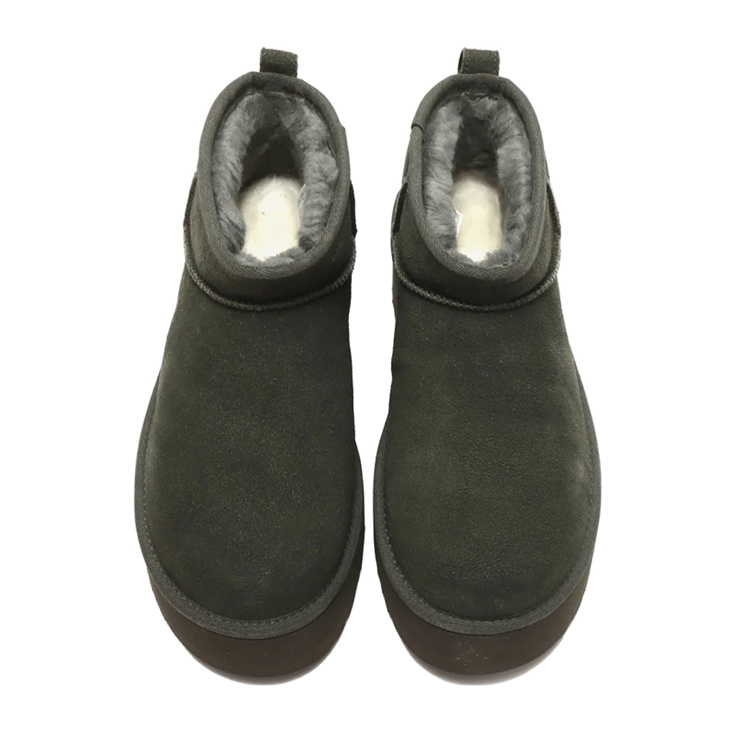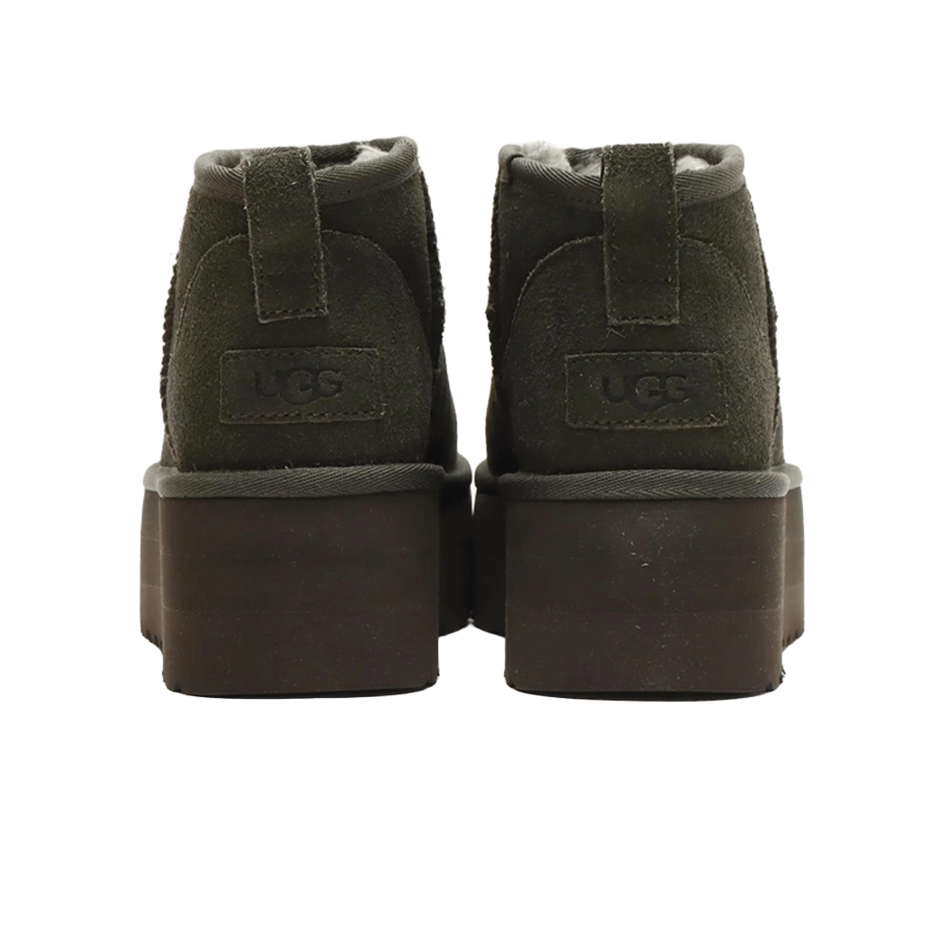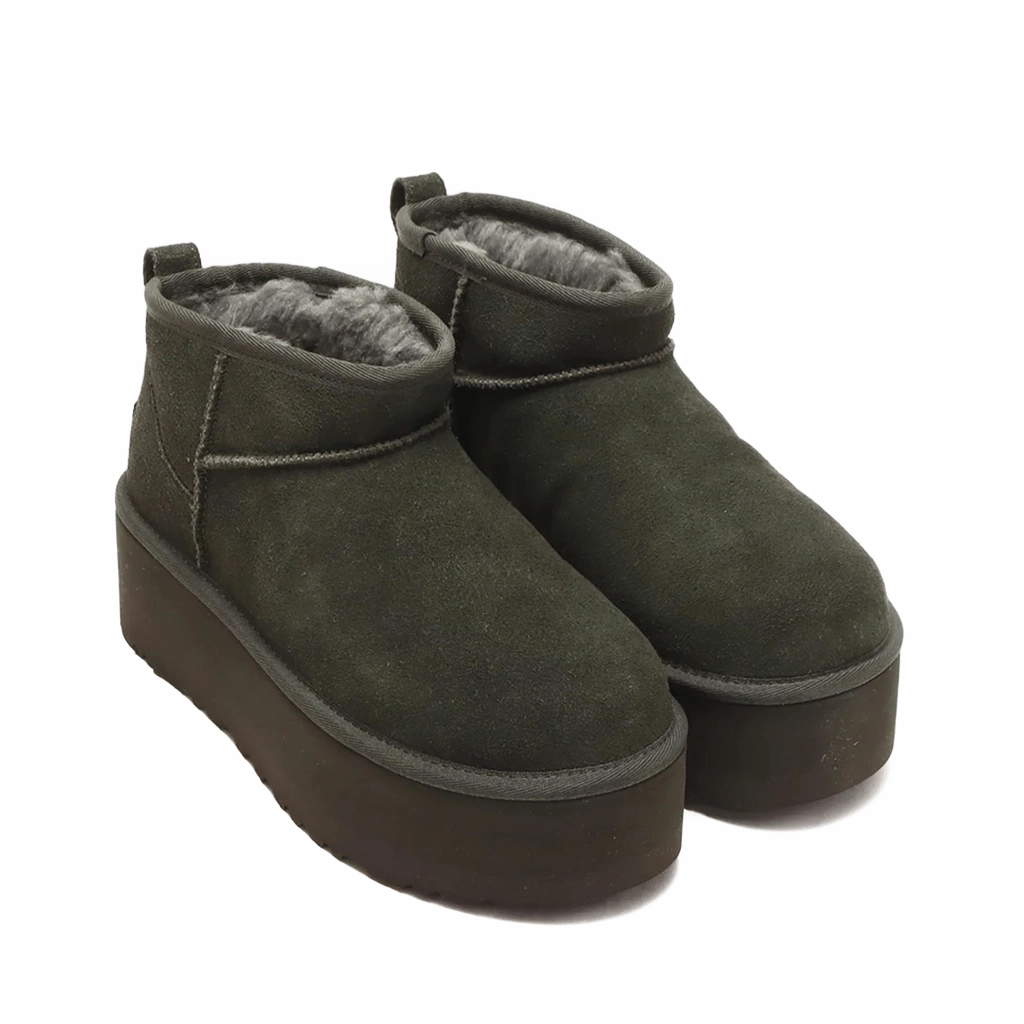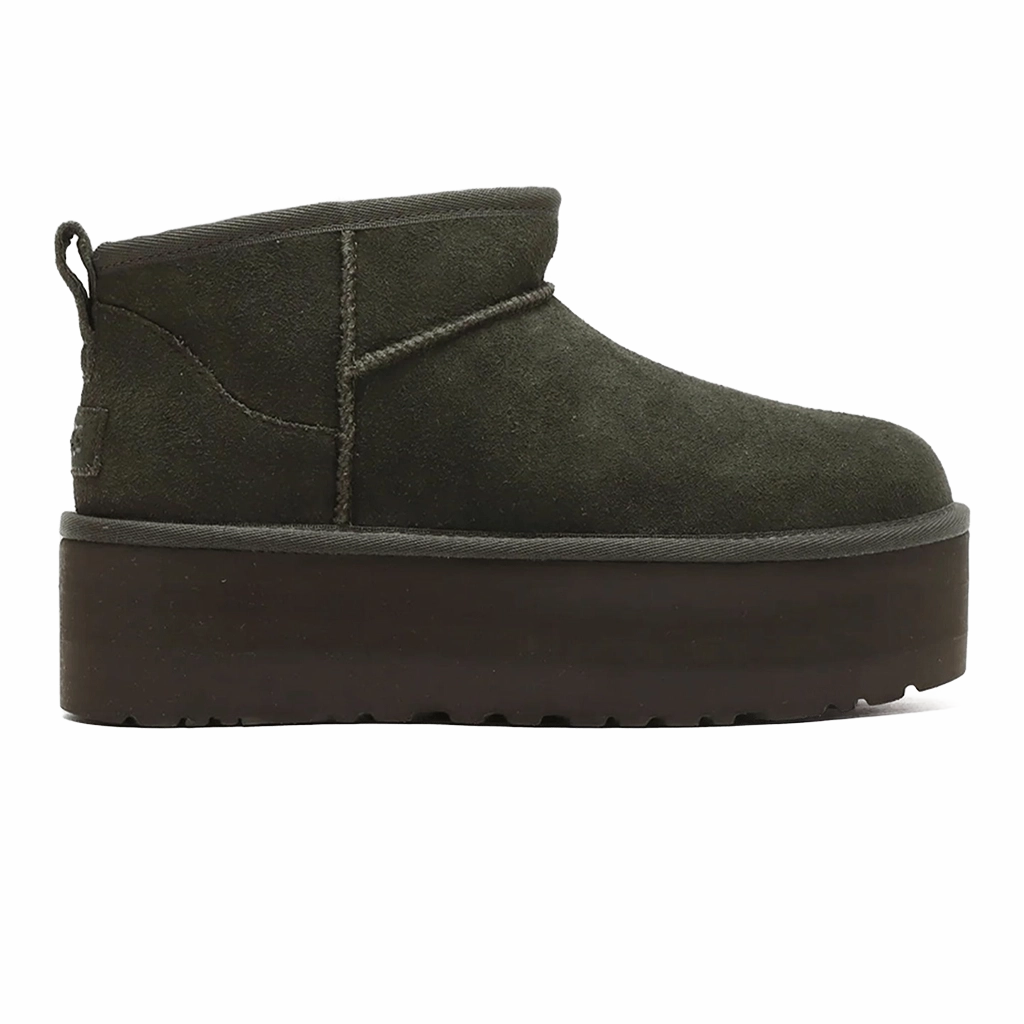 היכנסו לנוחות וסטייל עם נעלי UGG Classic Ultra Mini Platform בצבע Forest Night. נעלי בית אלו כוללות פנים מצמר כבשים רך וסוליית פלטפורמה להוספת גובה ונוחות, ומשלבות נוחות יומיומית עם סילואט אופנתי. הגוון הירוק הכהה מוסיף מגע מודרני לאוסף נעלי הבית שלך.