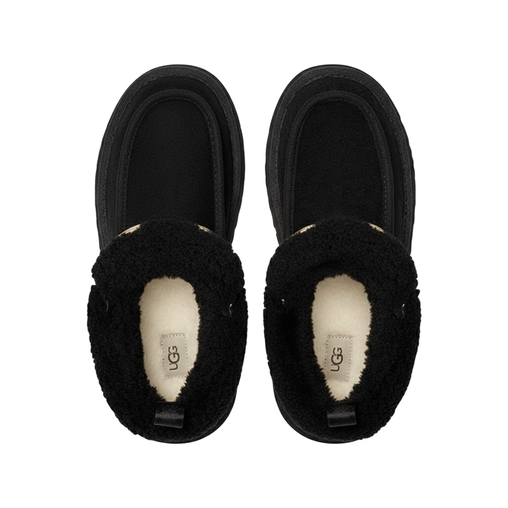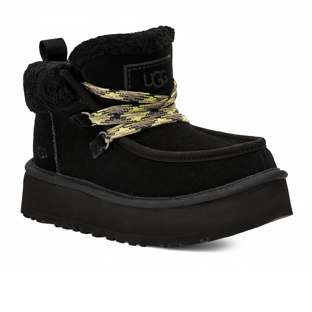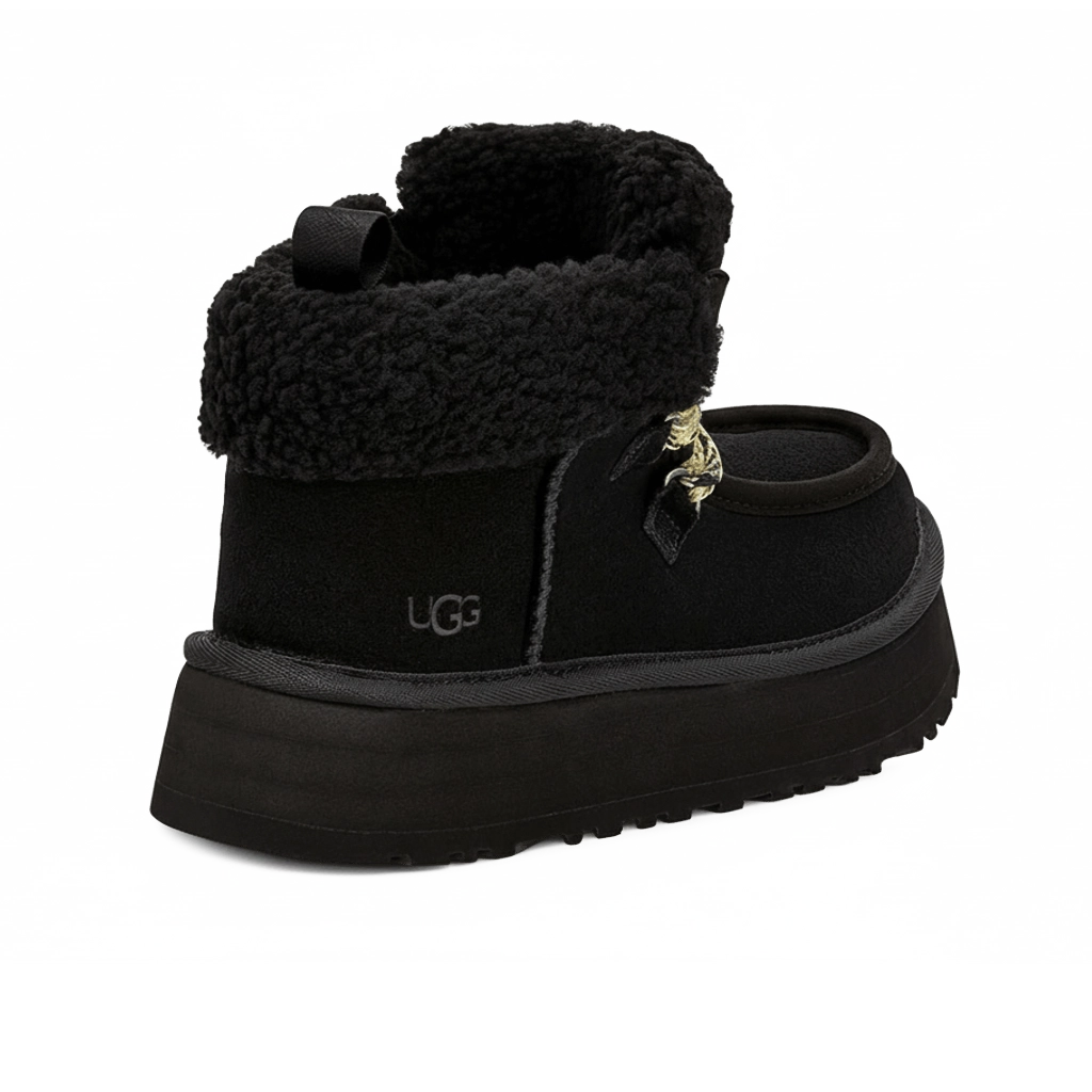 מגפי UGG Funkarra Cabin Cuff בצבע שחור משלבים חמימות של צמר טבעי עם מראה חורפי מודרני. אידאליים לנוחות ולסטייל בכל יום קר.