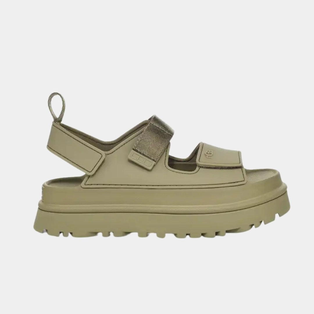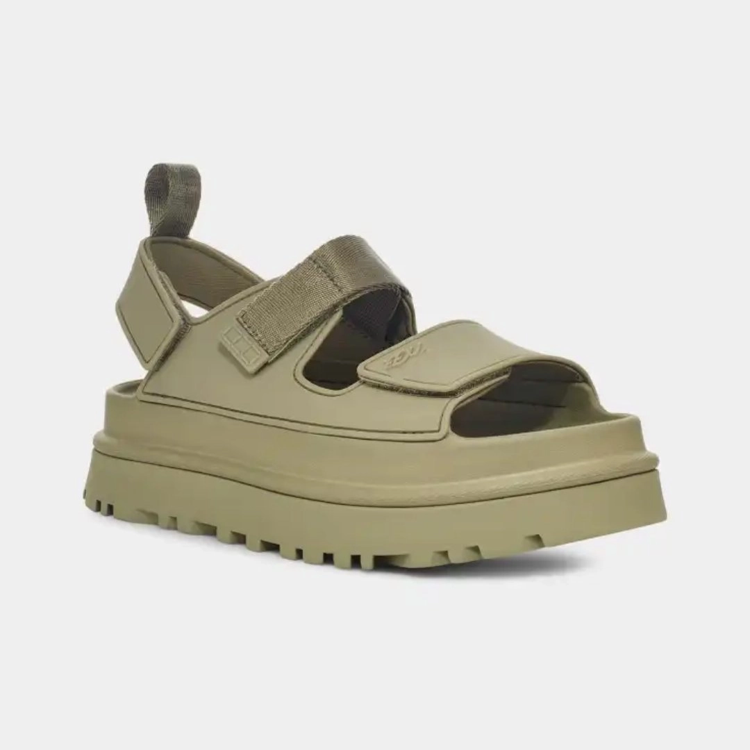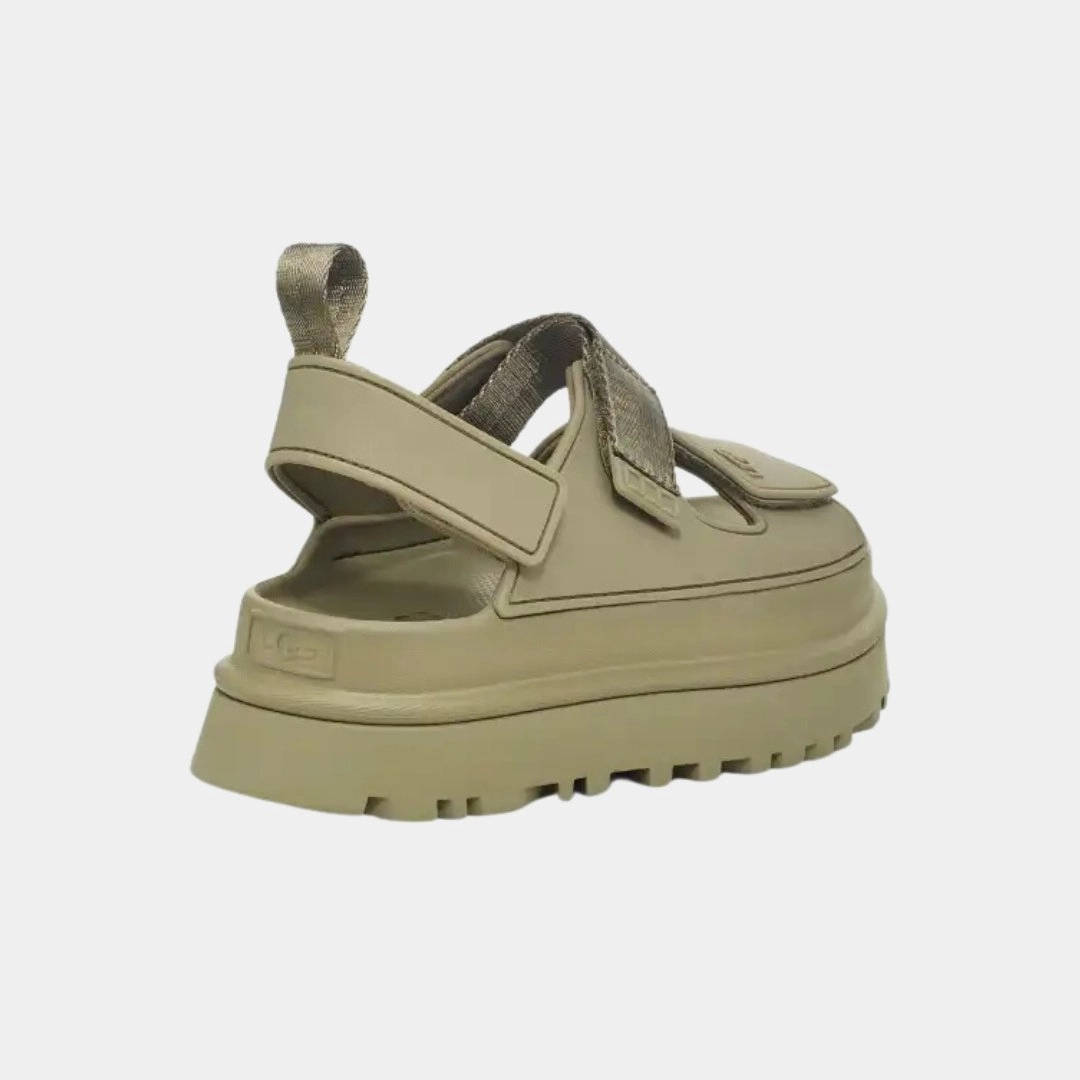 סנדלי UGG Goldenglow Flatform בצבע ירוק משלבים בין נוחות קלאסית לעיצוב מודרני ובולט. הסוליה המוגבהת מעניקה מראה עדכני ונוחות מרבית, והרצועות הקלות עשויות מחומר EVA איכותי המאפשר גמישות ועמידות. עם רצועת עקב מתכווננת והתאמה מושלמת, הסנדלים האלה מושלמים לימים חמים ולמראה קיצי קליל.