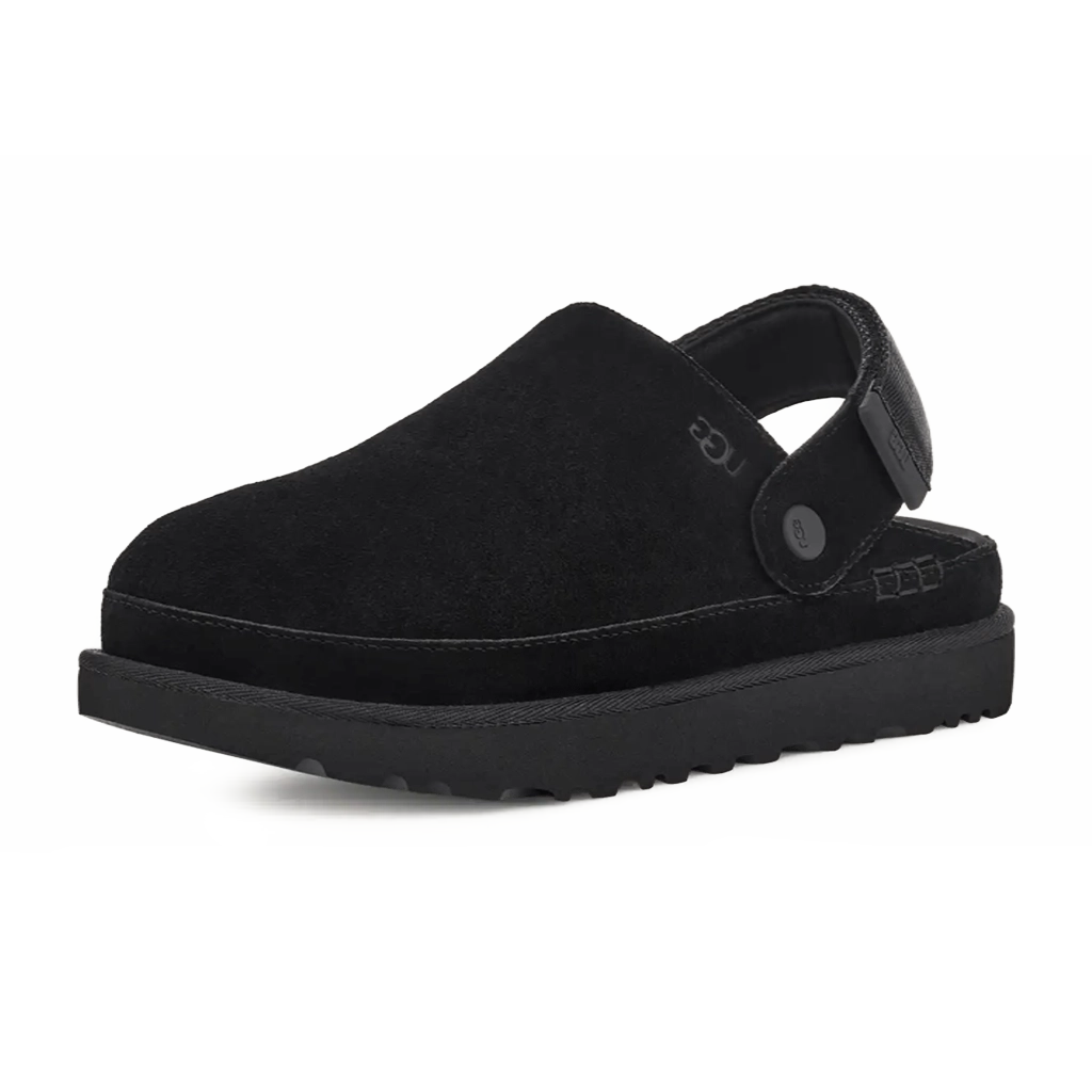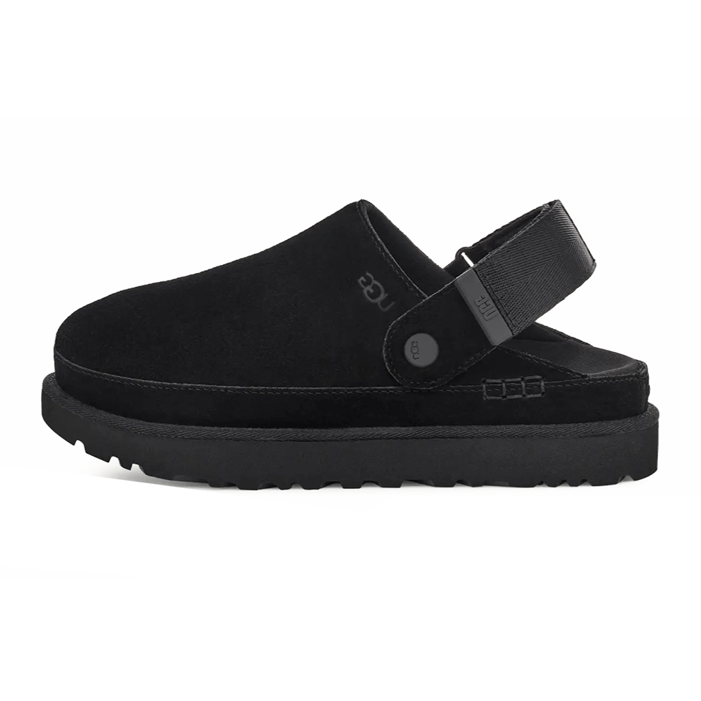 ה-UGG Goldenstar Clog בצבע שחור משלב נוחות וסטייל בעיצוב סולידי ונוח ללבישה. עשוי מעור פרימיום עם בטנת זמש רכה, מגף זה מספק ריפוד ותמיכה לאורך כל היום. סוליה מעוצבת וקלה מספקת יציבות ונוחות, מה שהופך אותו לבחירה רב-תכליתית לשימוש יומיומי או פנימי-חיצוני.