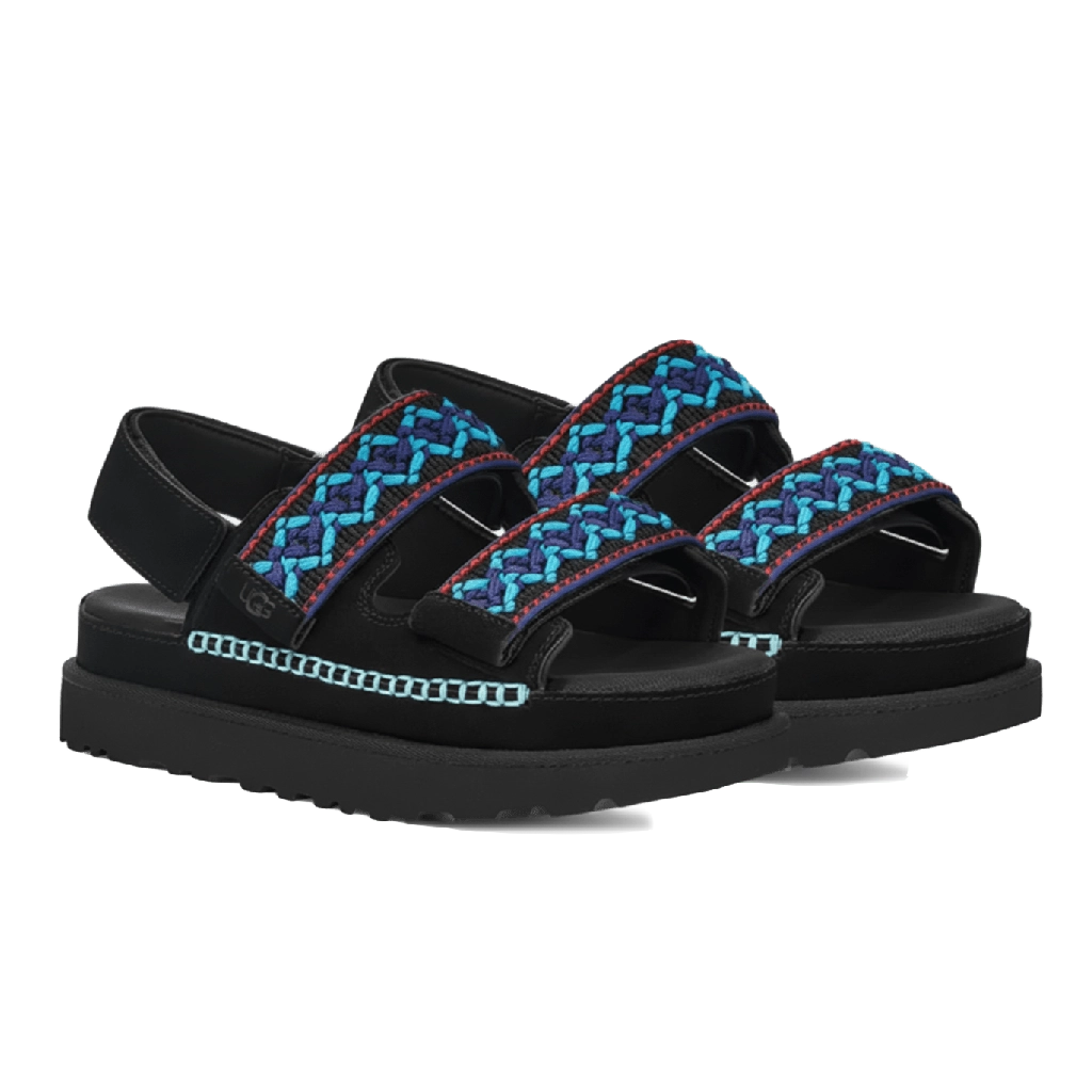 סנדל UGG Goldenstar Heritage Braid בצבע שחור משלב עיצוב קלאסי עם מראה מודרני ואלגנטי. עשוי מזמש איכותי עם רצועות קלועות המעניקות לו מראה יוקרתי וייחודי. המדרך הרך מספק נוחות לאורך כל היום, בעוד שהסוליה הקלה והגמישה מבטיחה יציבות ונוחות בתנועה. הסנדל המושלם לשילוב בין אלגנטיות יומיומית לבין נוחות אמיתית.