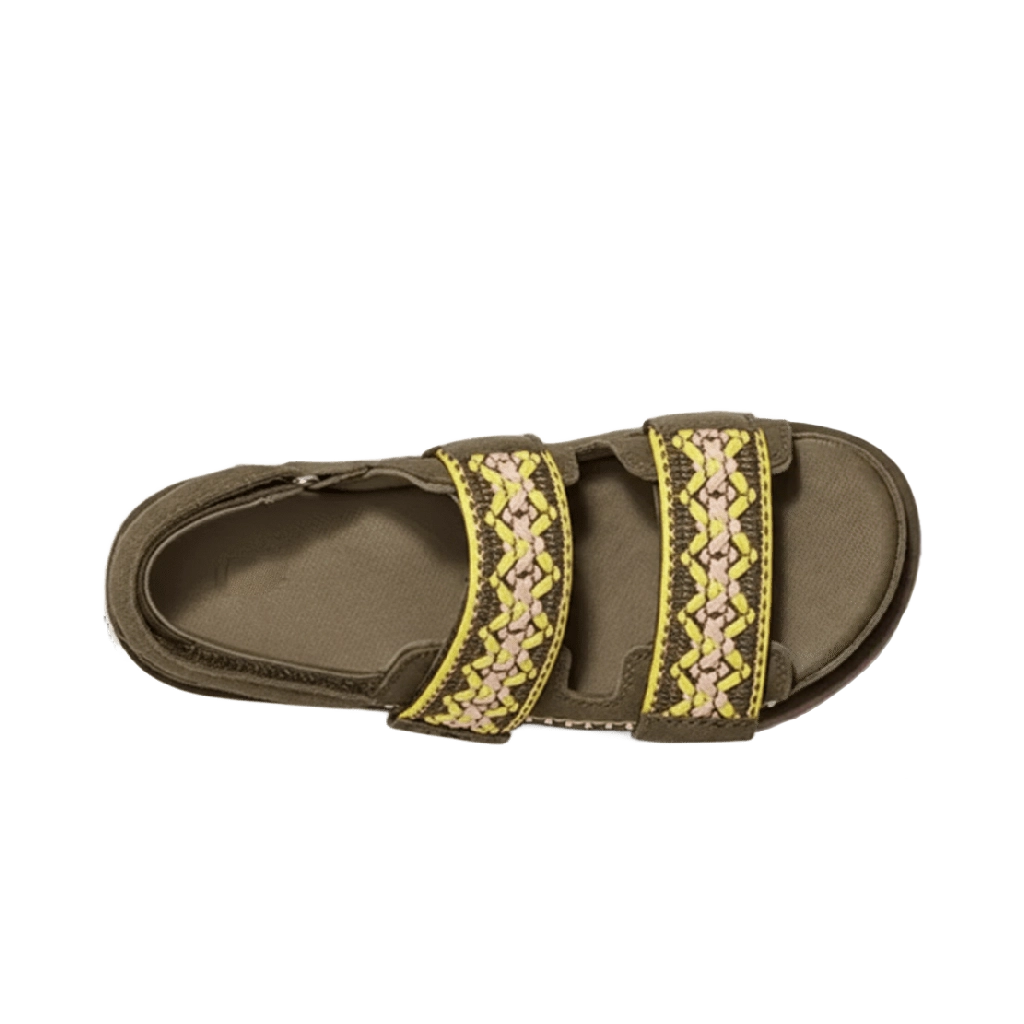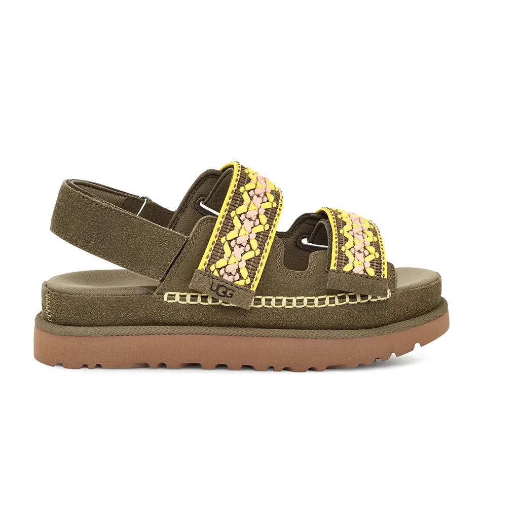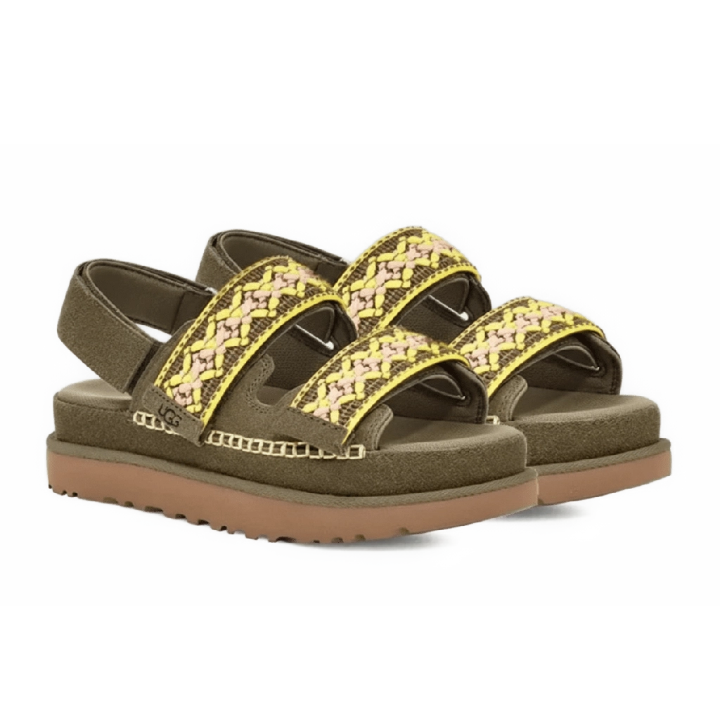 סנדל UGG Goldenstar Heritage Braid בצבע ירוק זית משלב בין נוחות יומיומית לאלגנטיות טבעית. עשוי מזמש רך ואיכותי, עם רצועות קלועות המעניקות מראה ייחודי ומעודן. המדרך המרופד מציע נוחות מרבית לאורך כל היום, בעוד הסוליה הקלה מספקת גמישות ויציבות. עיצוב קלאסי עם נגיעה מודרנית, מושלם לשילוב עם כל סגנון קיץ.