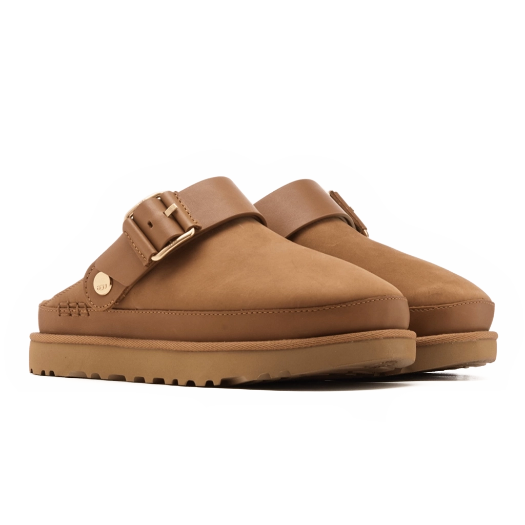 ה־UGG Goldenstar Villa בצבע Brown מציע שילוב מושלם בין עיצוב מודרני לנוחות ייחודית. הוא כולל חלק עליון רך, סוליית פלטפורמה תומכת ורצועה מתכווננת להתאמה אישית מושלמת, לנוחות וסגנון לכל היום. הצבע החום העשיר מוסיף מראה קלאסי ורב־שימושי, המתאים גם ללוקים קז’ואליים וגם להופעות אלגנטיות יותר.