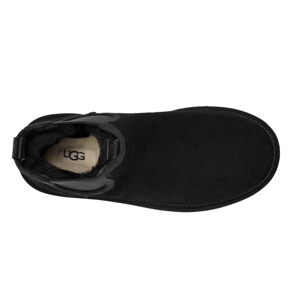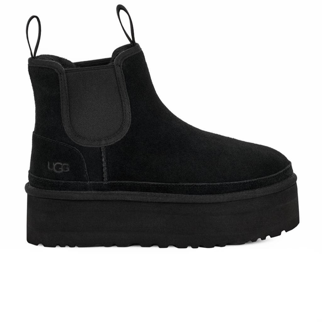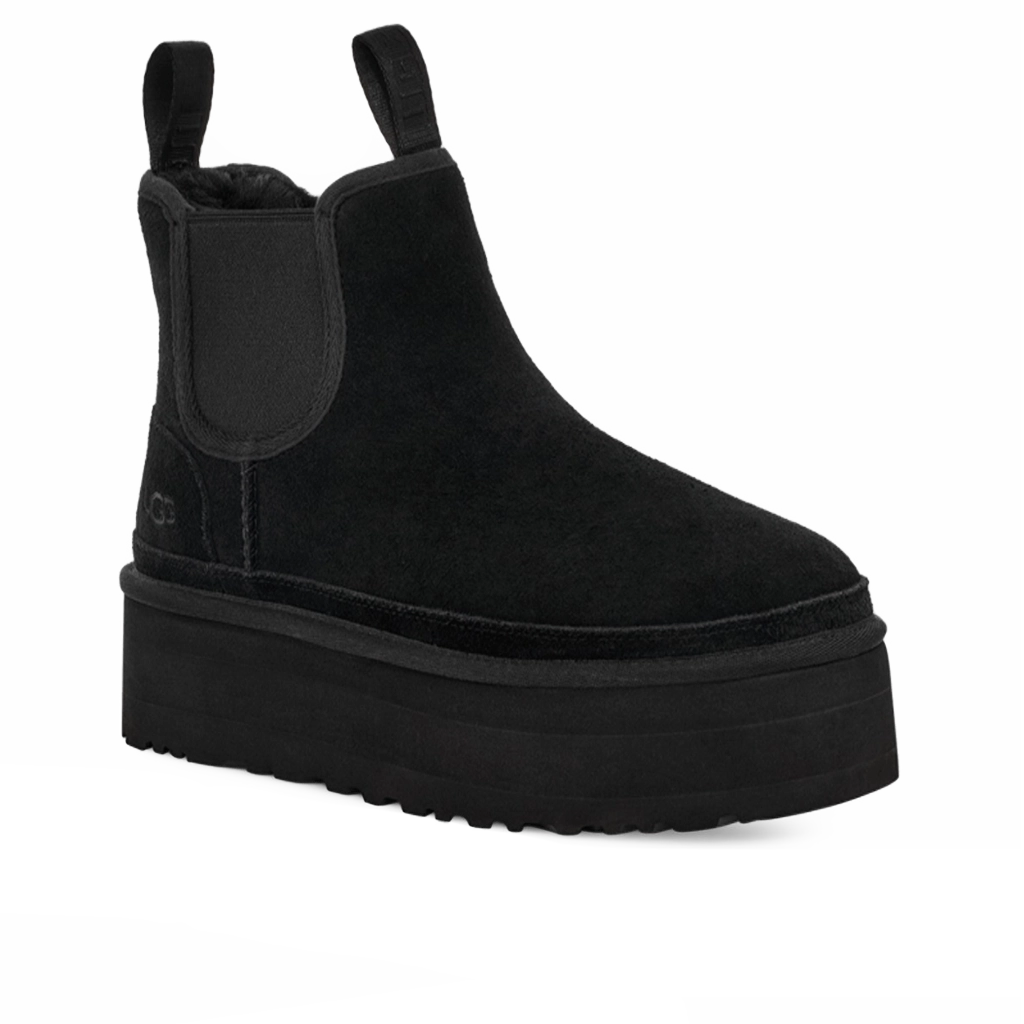 ה־UGG Neumel Platform Chelsea בצבע שחור משלב את עיצוב בוטי צ’לסי הקלאסי עם סוליה מוגבהת מודרנית. עשוי זמש שחור רך וריפוד פנימי איכותי מצמר כבש, הבוטים מספקים חום ונוחות יוצאי דופן. הסוליה המוגבהת מוסיפה מראה מודרני תוך שמירה על יציבות ועמידות, מה שהופך אותם למושלמים לשימוש יומיומי קז’ואלי ועירוני.