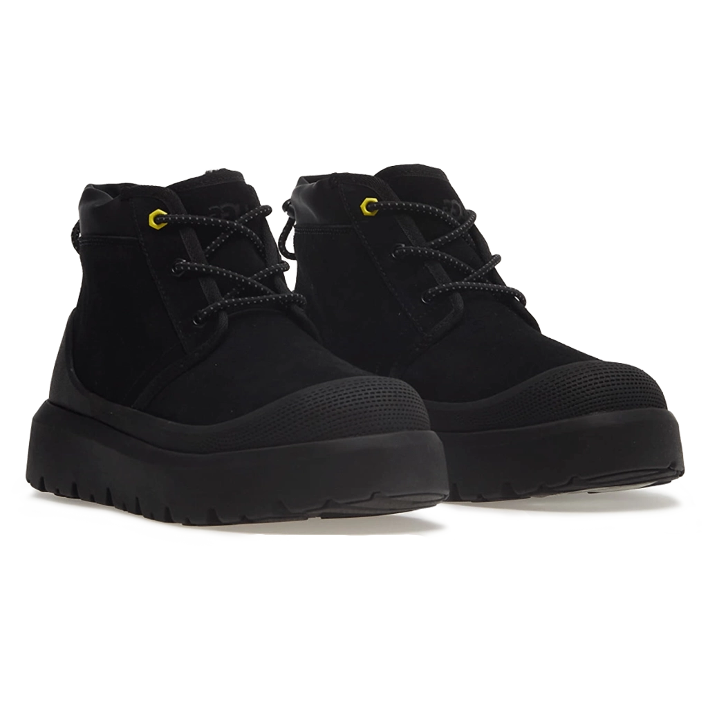 נעלי UGG Neumel Weather Hybrid בצבע שחור מביאות פרשנות מודרנית לסילואטה האייקונית עם פונקציונליות מתקדמת. הנעל משלבת מבנה עמיד למזג אוויר עם הנוחות המפורסמת של UGG. עשויה מזמש איכותי, מספקת חום, עמידות ואחיזה יציבה – בחירה מושלמת לשימוש יומיומי.