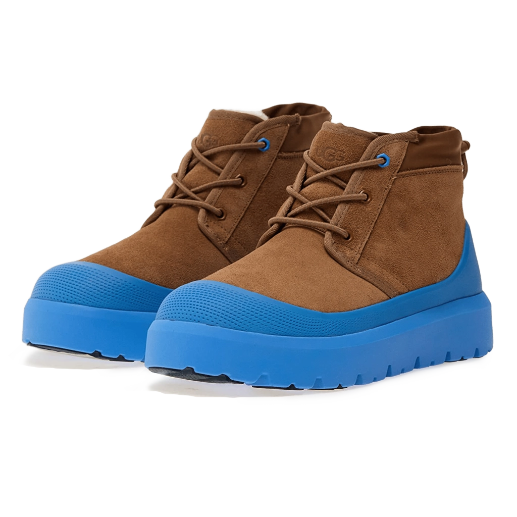 ה-UGG Neumel Weather Hybrid בצבעי Chestnut / Big Sky משלב עמידות קשוחה עם עיצוב מודרני לשימוש רב-תכליתי בכל מזג אוויר. עשוי מחלק עליון מזמש וטקסטיל עמיד למים, ריפוד נעים וסוליה מרופדת, המגף מספק נוחות, תמיכה והגנה בכל סביבה. שילוב הצבעים העשיר Chestnut עם גווני Big Sky מוסיף מראה טבעי ואופנתי, מושלם ליציאות קז’ואליות, הרפתקאות חיצוניות או ללוקים אורבניים.