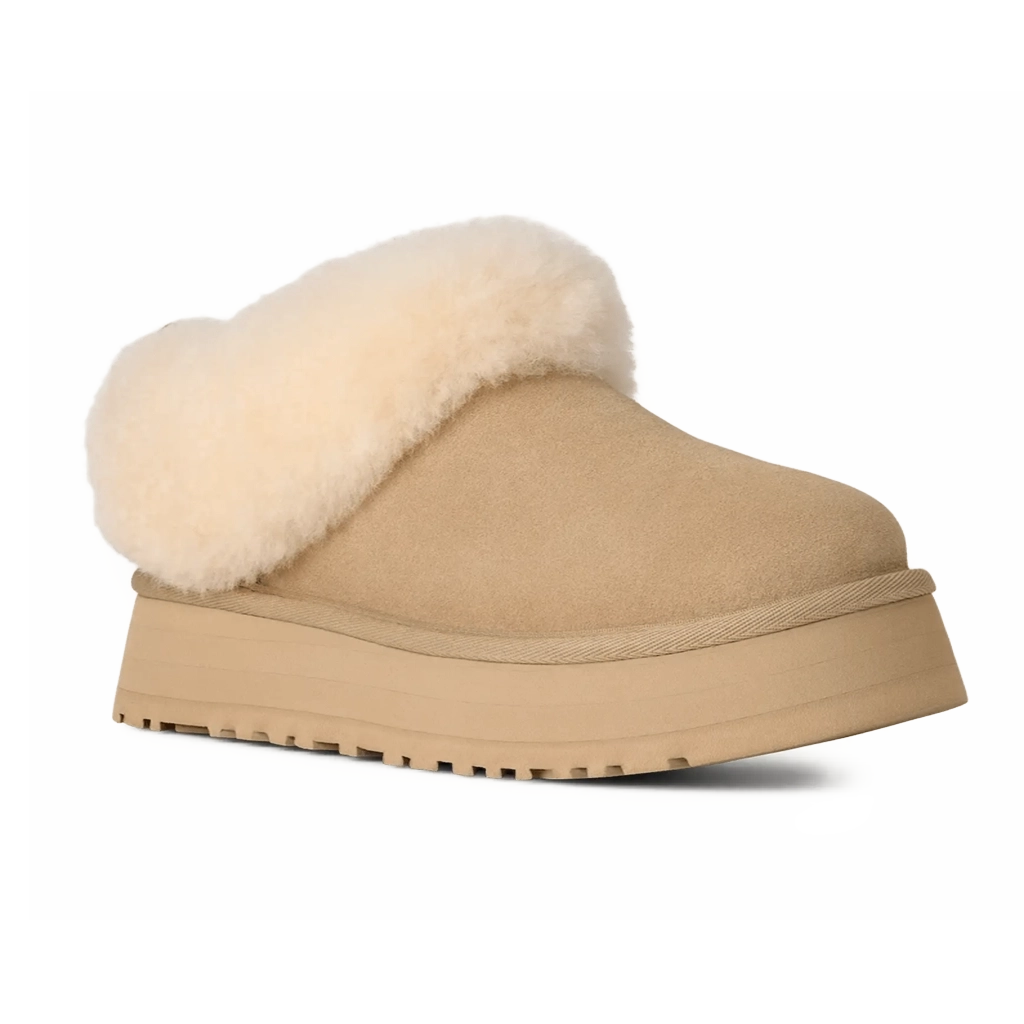 ה-UGG Tazzelle בצבע Mustard Seed מביא נגיעה רעננה של צבע יחד עם הנוחות האייקונית של UGG. עשוי זמש רך וריפוד צמר טבעי מפנק, הנעל מבטיחה חמימות ונעימות בכל צעד. סוליית הפלטפורמה המוגבהת מוסיפה מראה מודרני ועמידות, ומתאימה הן לשימוש בבית והן ליציאה יומיומית. שילוב מושלם של סטייל נועז ונוחות ללא תחרות.