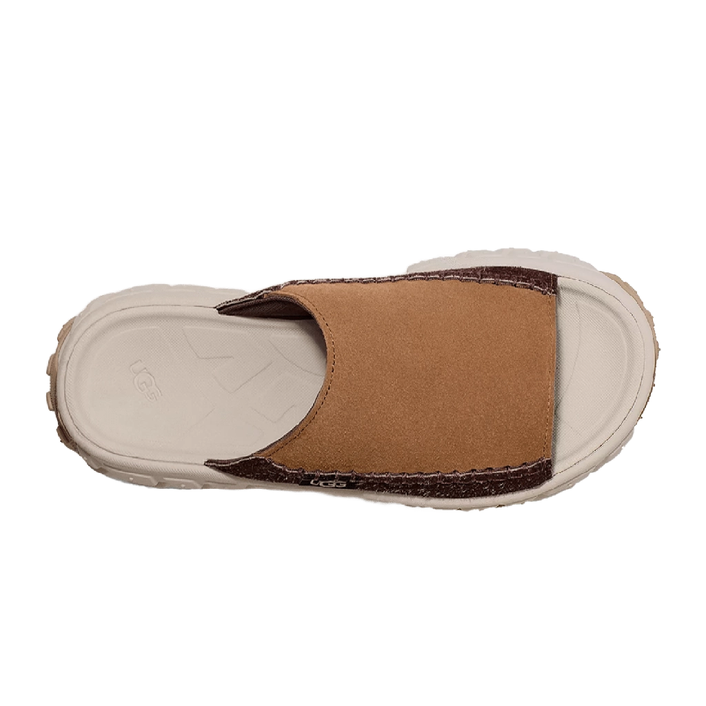תיהנו מנוחות מודרנית עם סנדלי UGG Venture Daze בצבע צ’סטנאט/קרמי. עם עליון מזמש רך וריפוד צמר כבשים מפנק, הסנדלים מספקים תחושה נעימה ומרופדת לאורך כל היום. הסוליה העמידה מבטיחה אחיזה בטוחה לשימוש בבית וליציאות קלות, בעוד שילוב הצבעים הצ’סטנאטי והקרמי מעניק מראה אופנתי ורב-שימושי. עיצוב קל להחלקה על הרגל משלב נוחות מודרנית עם פרקטיות יומיומית.